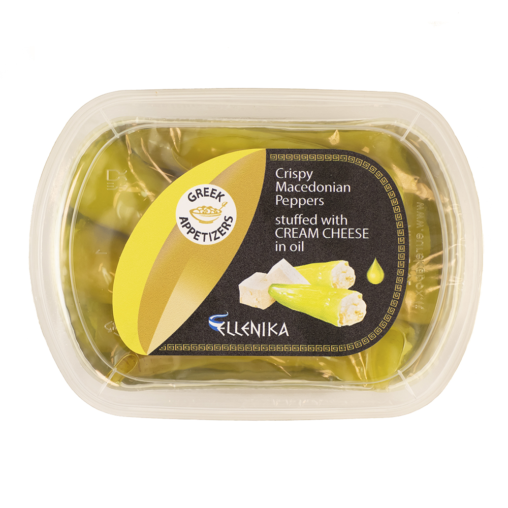 Хрустящие македонские перчики пепперони, которые приготовлены особым способом и начинены сливочным сыром. В производстве используются плоды перца и нежнейший сливочный сыр собственного производства с добавлением овечьего и козьего молока. Этот продукт готов к употреблению в качестве самостоятельной закуски.