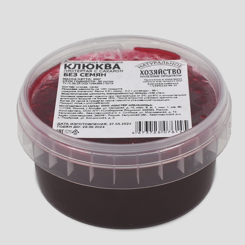 Плодоовощная продукция, клюква протертая с сахаром без семян. Отлично подойдет к чаю и сделает ярче вкус творогу, каше.