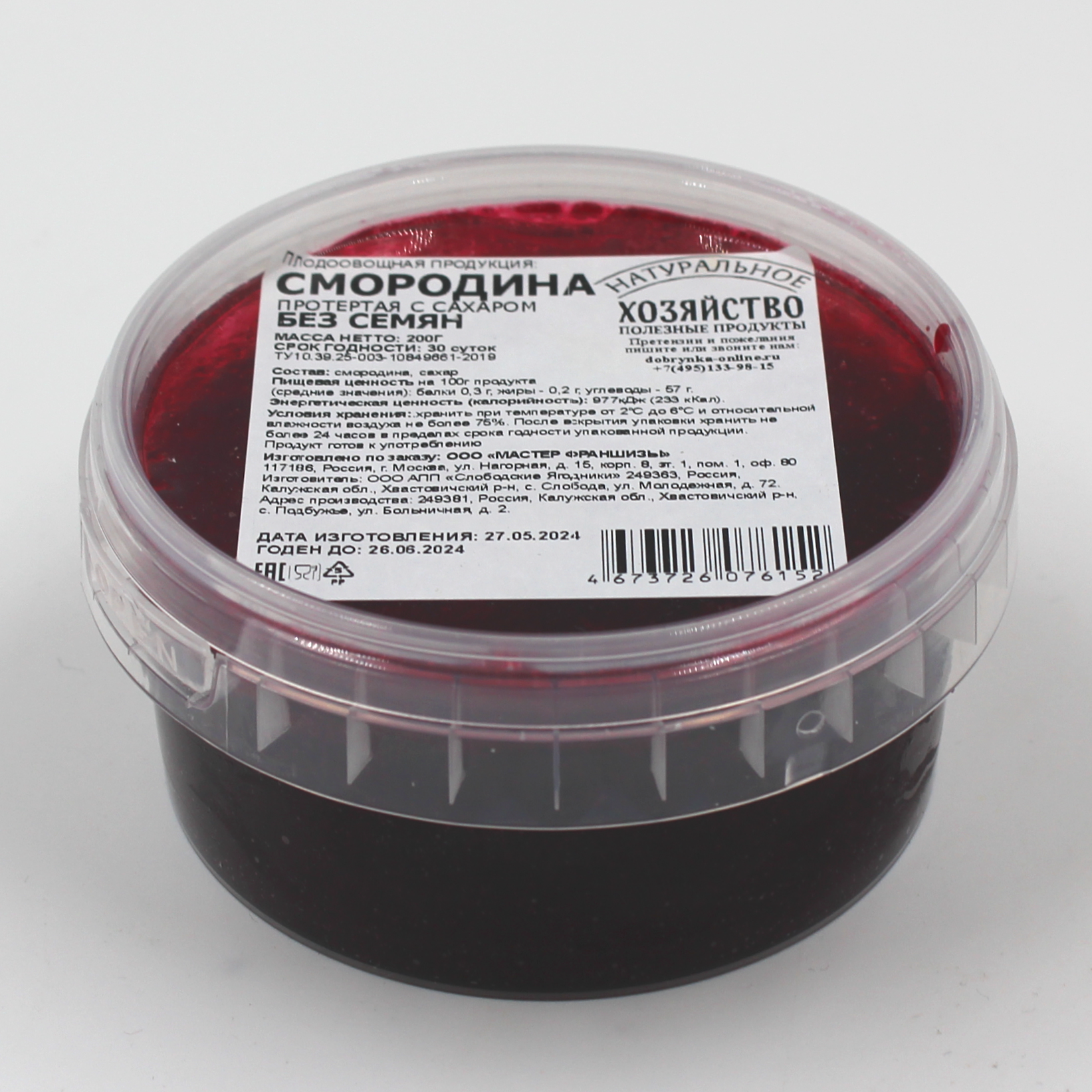 Плодоовощная продукция, смородина протертая с сахаром без семян. Отлично подойдет к чаю и сделает ярче вкус творогу, каше.