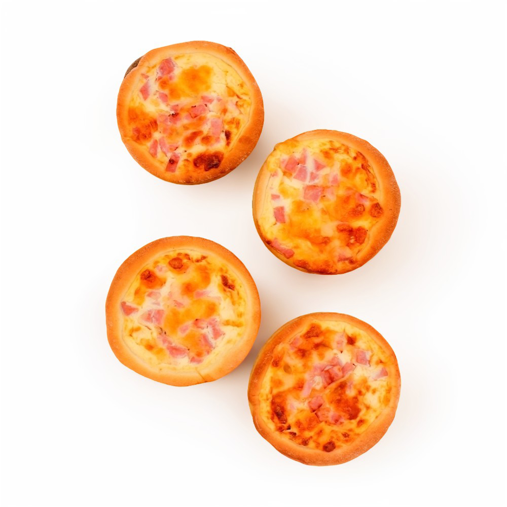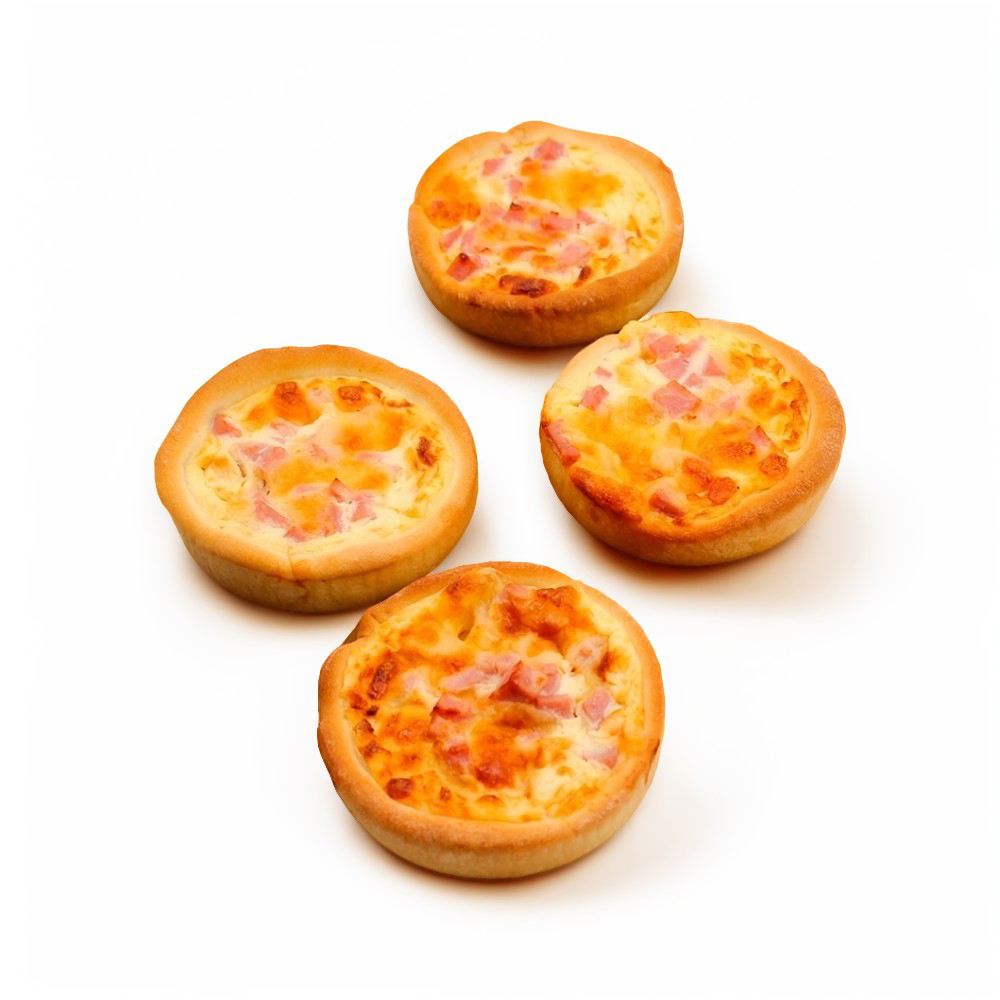 Песочная основа, нежная ветчина и расплавленный сыр – это идеальное сочетание текстур и вкусов. Каждый фламаш – как мини-пицца, но изящнее и с более насыщенной начинкой. Готовы за минуту в духовке или микроволновке!
