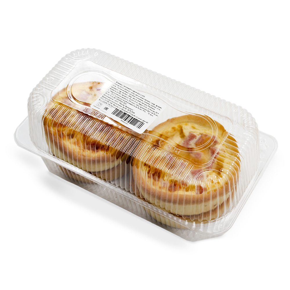 Мука в/с, вода, масло подсолнечное, сахар, дрожжи, соль. Состав начинки: ветчина (говядина, свинина, курица, соль, крахмал), сыр, молоко, яйцо, масло подсолнечное.