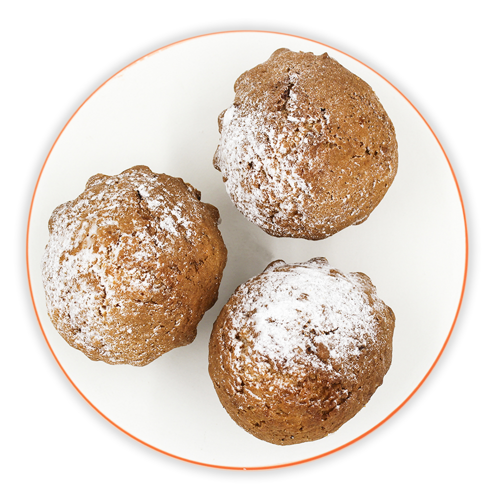 Мука в г, творог 9%, сахар, яйцо, масло сливочное 82%, апельсин свежий, разрыхлитель теста, сахарная пудра, ванилин.