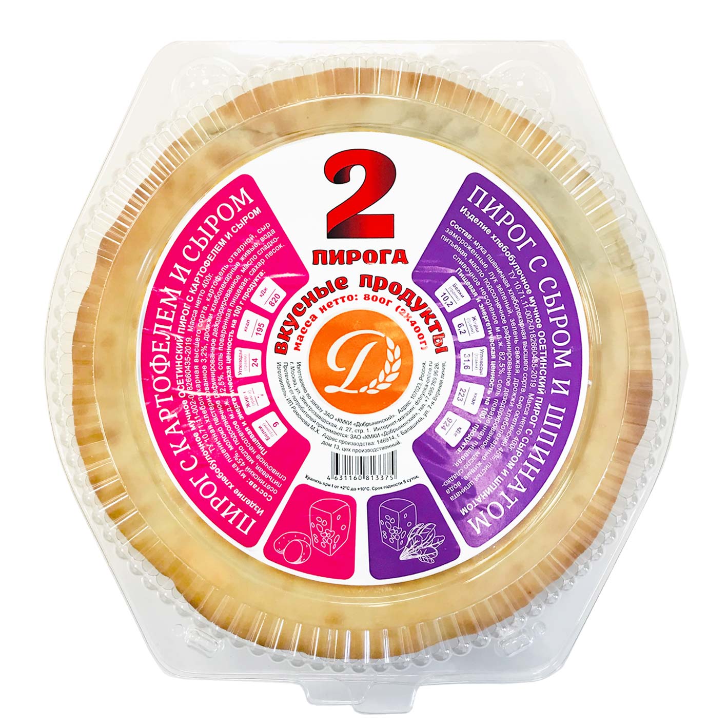 Пирог с сыром и шпинатом: мука пшеничная хлебопекарная высшего сорта, сыр осетинский 45%, листья шпината замороженные, лук зеленый, зелень свежая, дрожжи хлебопекарные живые,вода питьевая, масло подсолнечное рафинированное дезодорированное, масло сладко-сливочное несоленое м.д.ж. 82,5%, соль поваренная пищевая. Пирог с картофелем и сыром: мука пшеничная хлебопекарная высшего сорта, картофель отварной,сыр осетинский 45%, молоко пастеризованное 3,2%, дрожжи хлебопекарные живые,вода питьевая, масло подсолнечное рафинированное дезодорированное, масло сладко-сливочное несоленое м.д.ж. 82,5%, соль поваренная пищевая, сахар песок.