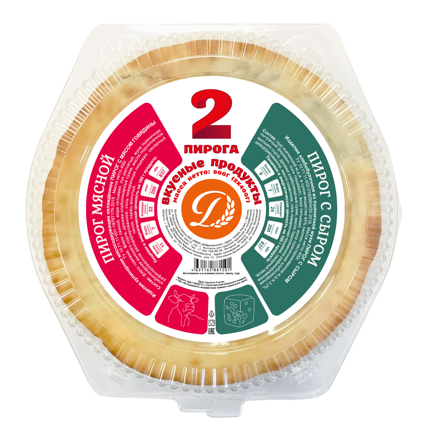 Набор осетинских пирогов 2 по 400 г (Пирог с мясом/Пирог с сыром)