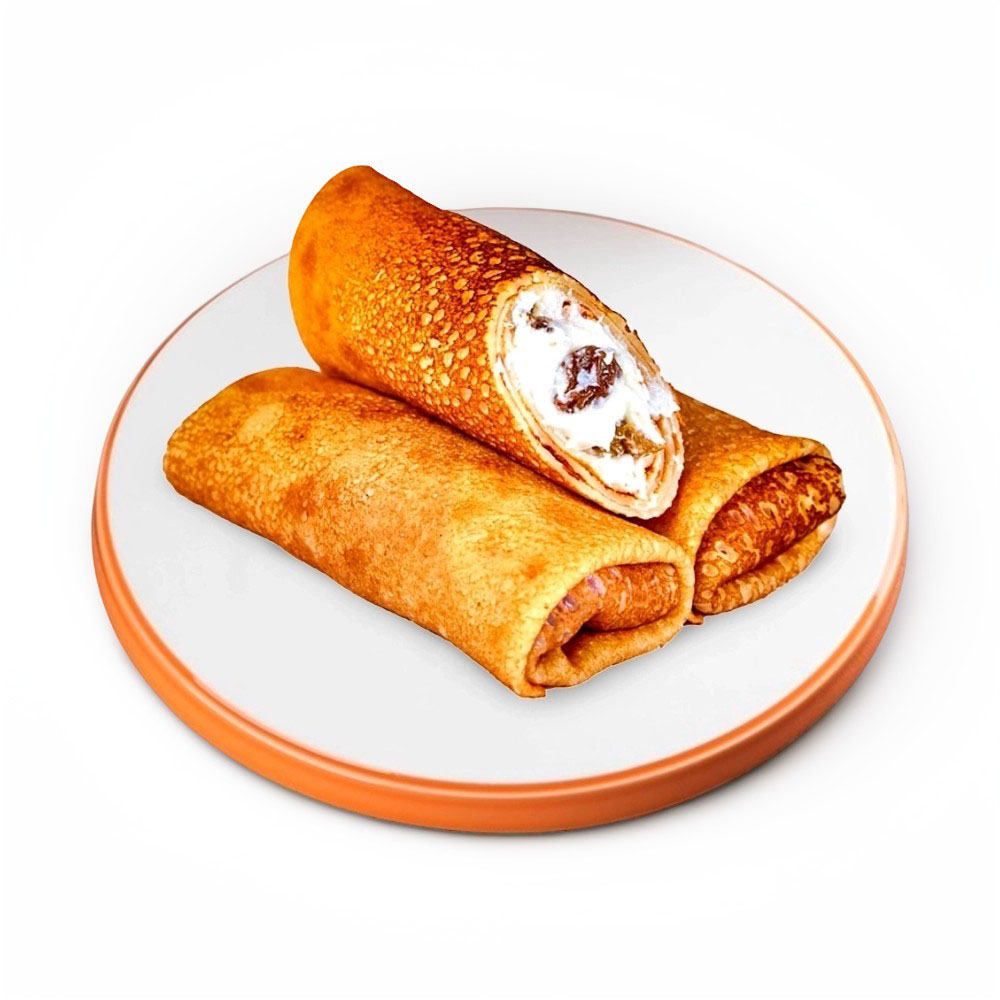 Нежные молочные блины с начинкой из творога и изюма
