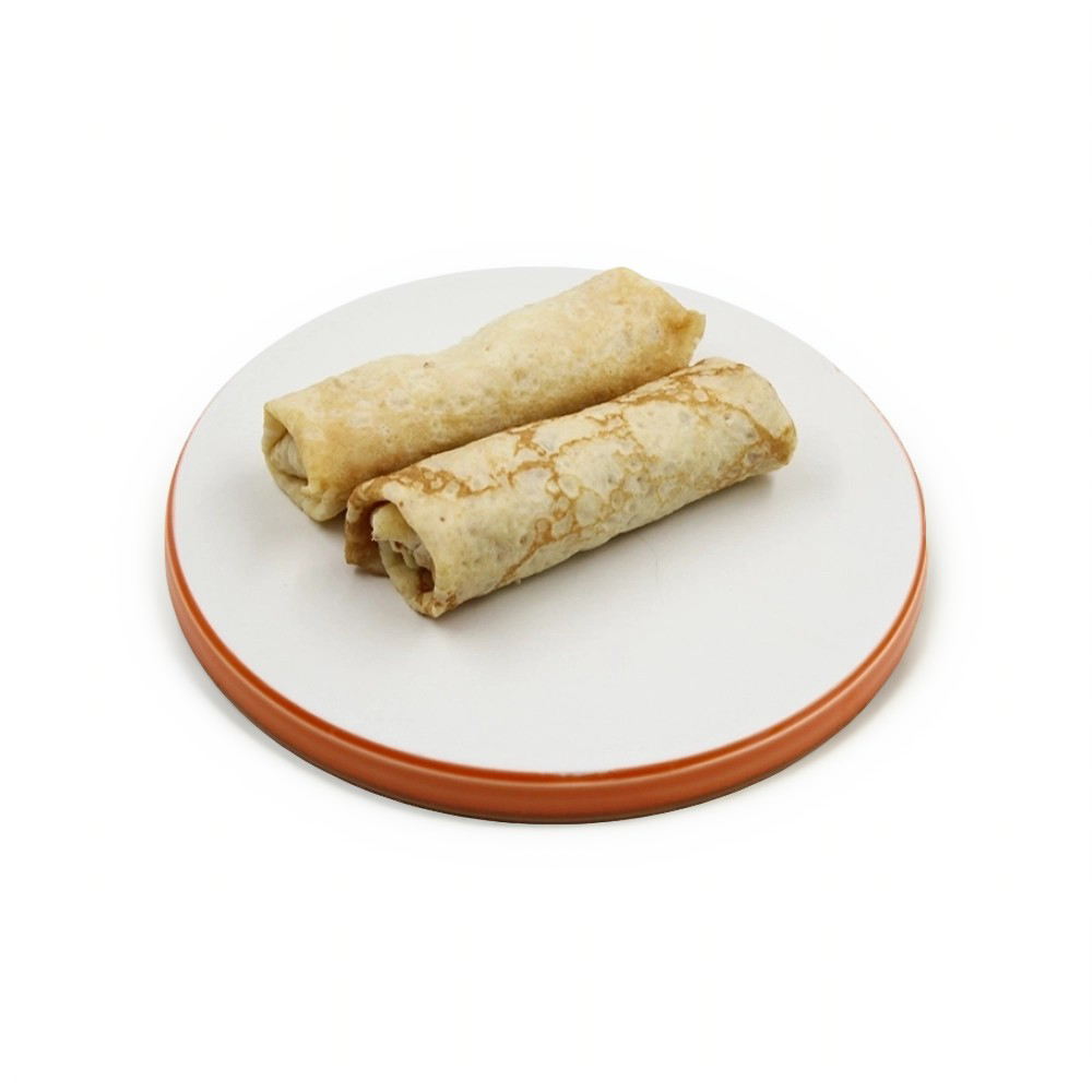 В основе — тонкое, эластичное тесто: молоко и яичный меланж делают его мягким, а немного сахара и соли — сбалансированным на вкус. Внутрь добавлен расплавленный полутвёрдый сыр: он даёт насыщенный молочный вкус и лёгкую упругость.