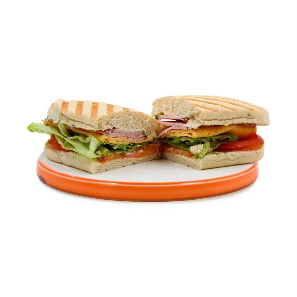 Панини Гриль это хрустящий хлеб с копчёным карбонадом, нежным омлетом и сочными томатами. Это готовое решение с идеальным балансом белка и овощей. Закажите для сытного обеда, перекуса или быстрого и вкусного перекуса.