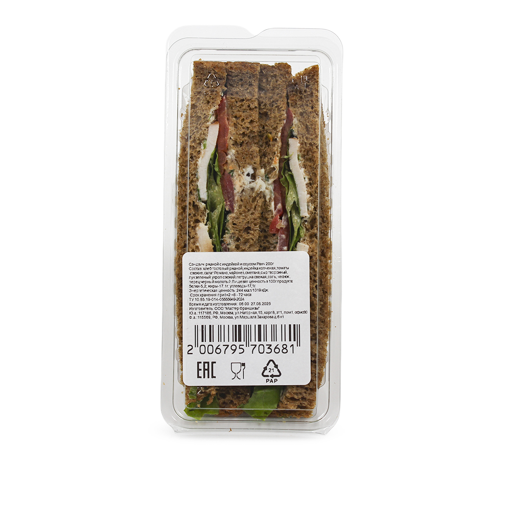 Сэндвич ржаной с индейкой и соусом Ранч 200 г