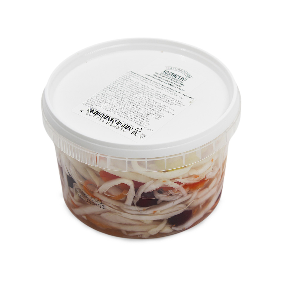 Капуста белокочанная, маринад (вода питьевая, сахар, соль, регулятор кислотности уксусная кислота) морковь столовая, клюква, болгарский перец. Продукция производится на предприятии, где используются орехи, горчица, кунжут, молочные продукты, сельдерей, соя, аспартам, моллюски и продукты их переработки.