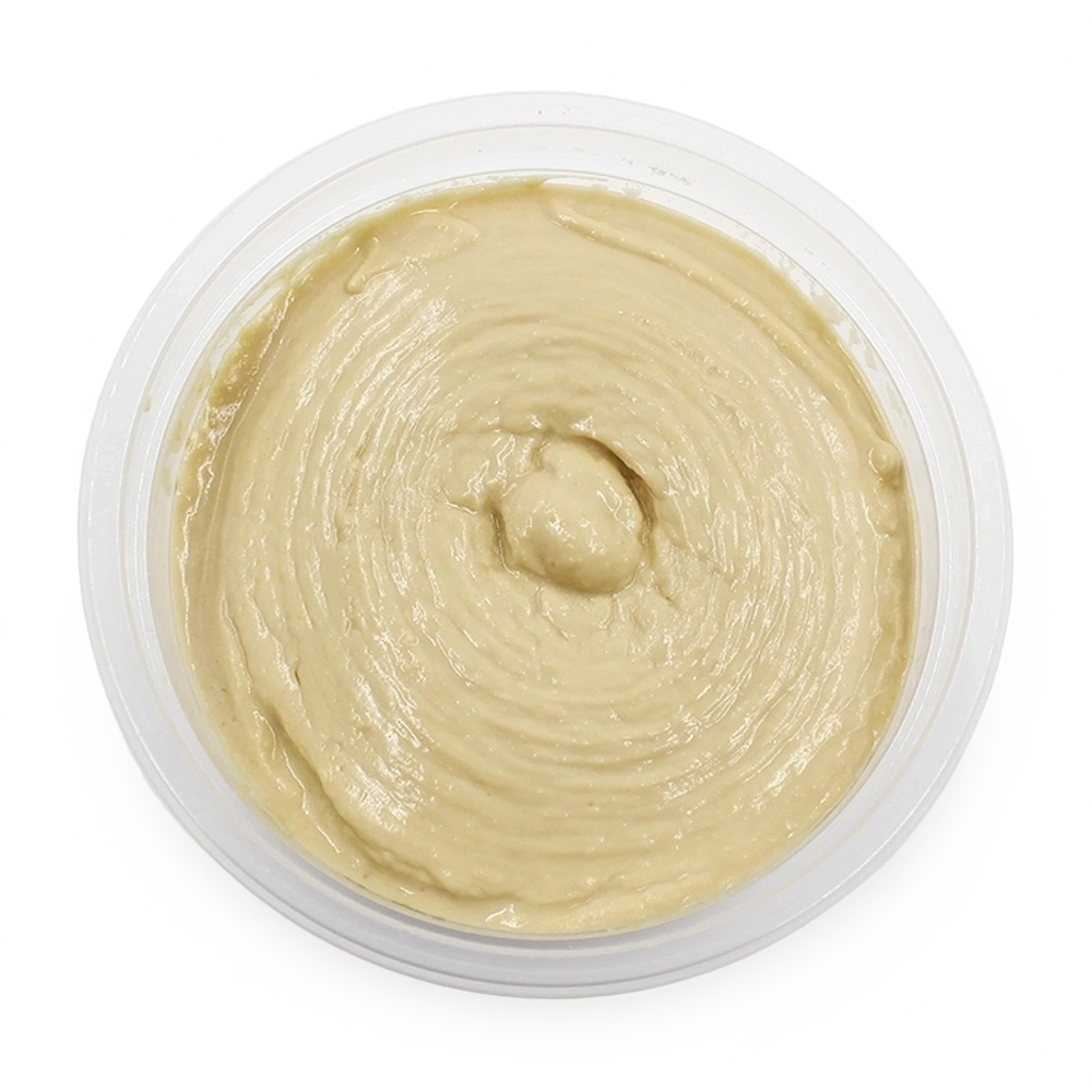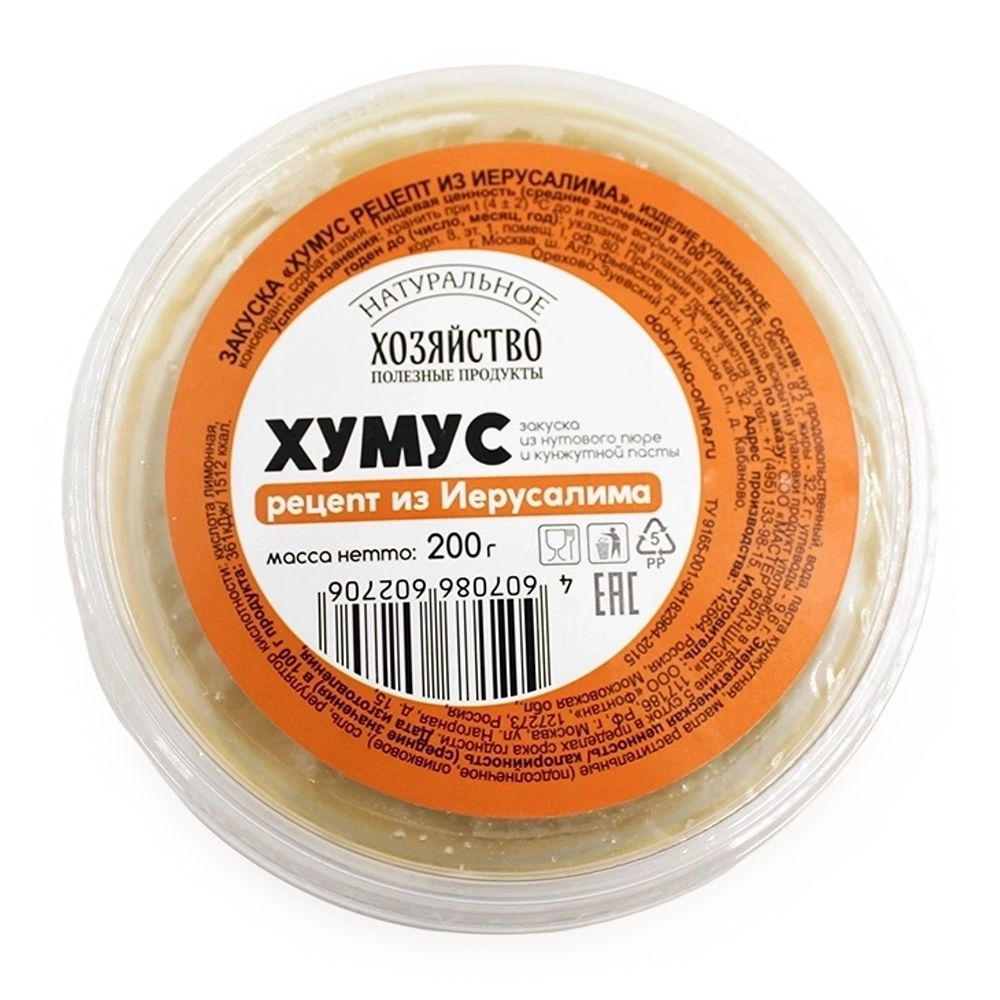Нут продовольственный, вода, паста кунжутная, масла растительные (масло подсолнечное, масло оливковое), соль поваренная пищевая, регулятор кислотности кислота лимонная, консервант сорбат калия.
