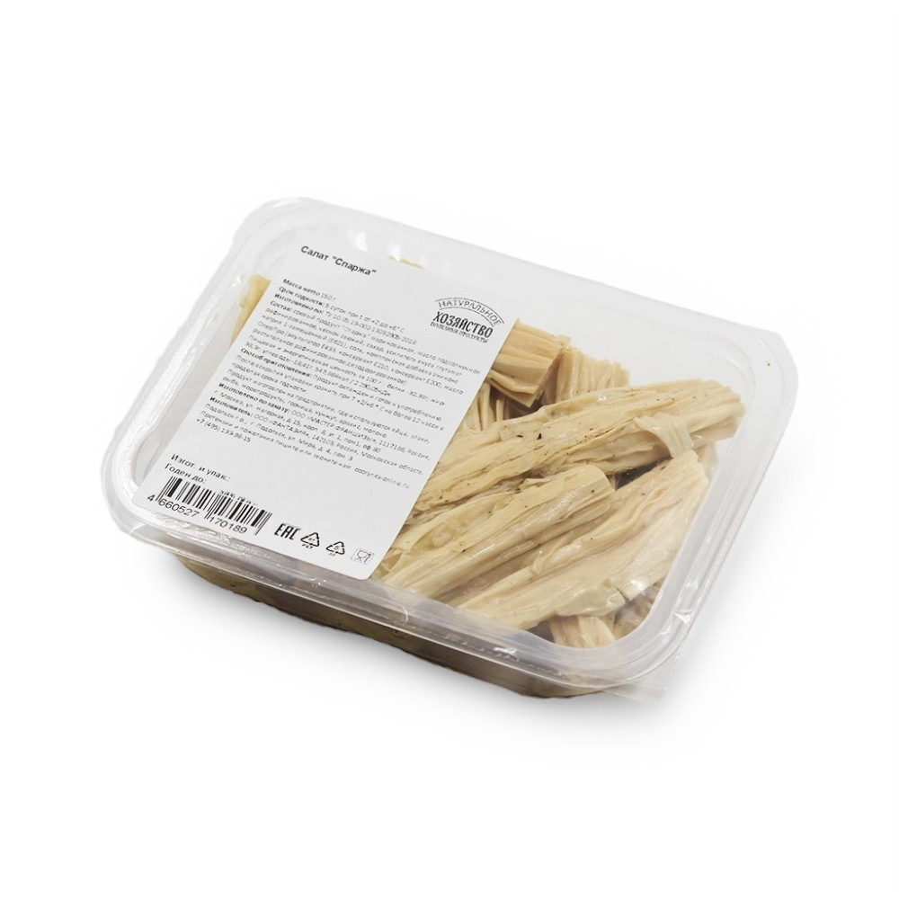 Соевый продукт "Спаржа" маринованная, масло подсолнечное рафинированное, чеснок свежий, сахар, усилитель вкуса глутамат натрия 1-замещенный (E621), соль, комплексная добавка Униконс ОлеоПро (эмульгатор Е433, консервант Е210, консервант Е200, масло растительное рафинированное дезодорированное)
