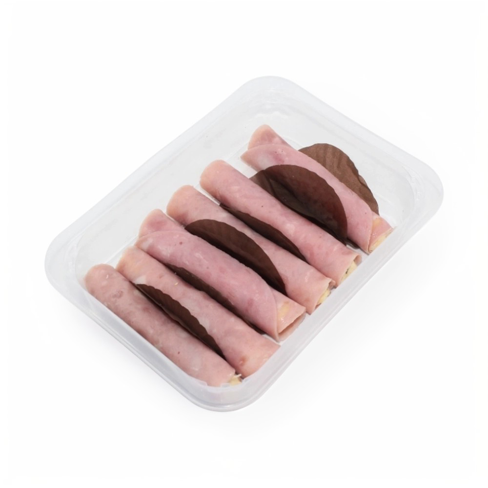Ветчина из индейки, начинка (майонез м.д.ж. 67%, сыр маасдам, яйцо куриное, сыр чеддер, зелень укропа св., чеснок св., соль). Может содержать следы арахиса, горчицы, орехов, кунжута, моллюсков, молочных продуктов, ракообразных, рыбы, сельдерея, сои, яиц, злаков, содержащих глютен. Упаковано в модифицированной газовой среде.