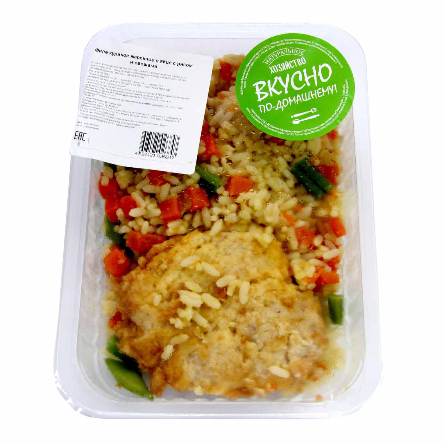 Нежное куриное мясо в яйце с миксом овощей и риса