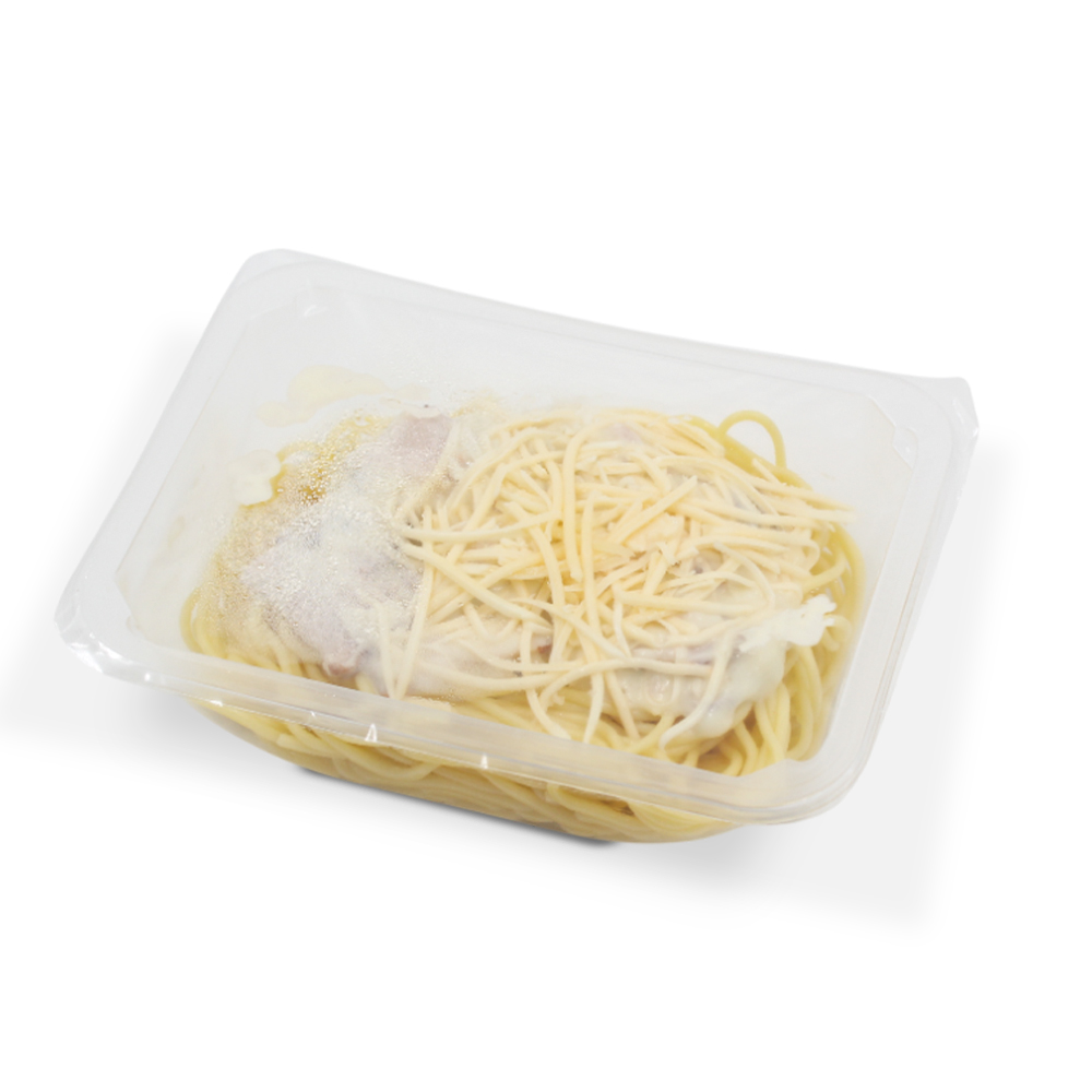 спагетти из твёрдых сортов пшеницы (мука из твёрдой пшеницы дурум высшего сорта, вода питьевая), окорок свиной в/к(свинина, соль, соевый белок, загустители, регуляторы кислотности( трифосфат натрия 5-замещенный ацетат натрия, диацетат натрия, цитрат натрия 3-замещенный), агент желирующий (хлорид калия), декстроза, стабилизаторы (дигидропирофосфат натрия, ксантановая камедь), антиокислитель (изоаскарбат натрия), молочный белок, пшеничная клетчатка, крахмал картофельный, ароматизаторы (мясные: мясо, свинина, говядина, бекон, телятина, бульон), усилители вкуса и аромата (глутамат натрия 1-замещенный), краситель, фиксатор окраски (нитрит натрия).), грудинка свиная к/в(рудинка свиная без кости, вода питьевая, нитритно-посолочная смесь (соль пищевая, фиксатор окраски- нитрит натрия), регулятор кислотности-трифосфат натрия, сахар виноградный, усилитель вкуса и аромата-глутамат натрия, антиокислитель-аскорбат натрия, ароматизаторы),лук репчатый, сыр полутвёрдый(молоко нормализованное пастеризованное, соль пищевая, молокосвертывающий ферментный препарат животного происхождения, закваски бактериальные (основа заквасочная микрофлора- мезофильные микроорганизмы), ферментный препарат животного происхождения лизоцим (получен из белков куриных яиц), пищевые добавки: краситель натуральный пищевой Аннато, уплотнитель-хлорид кальция, регурятор кислотности-молочная кислота), сливки 33%(сливки нормализованные), молоко 3,2%, масло подсолнечное рафинированное дезодорированное.