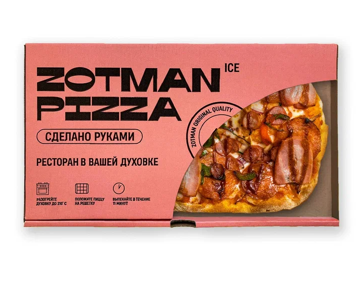 Пицца Zotman "Баварская мясная" очень мясная - много начинки из колбасок, бекона, Пепперони и Чоризо. Томатный соус и мягкий сыр Моцарелла на пышном тесте вот всё что нужно для римской пиццы. В результате тепловой обработки высококачественный продукт приобретает хрустящую корочку и изумительный аромат. Стоит отметить, что продукция Zotman соответствует итальянским технологиям производства пиццы. Благодаря стильной и яркой упаковке вам будет не стыдно прийти с таким презентом в гости. Гарантируем, что все будут довольны и сыты!