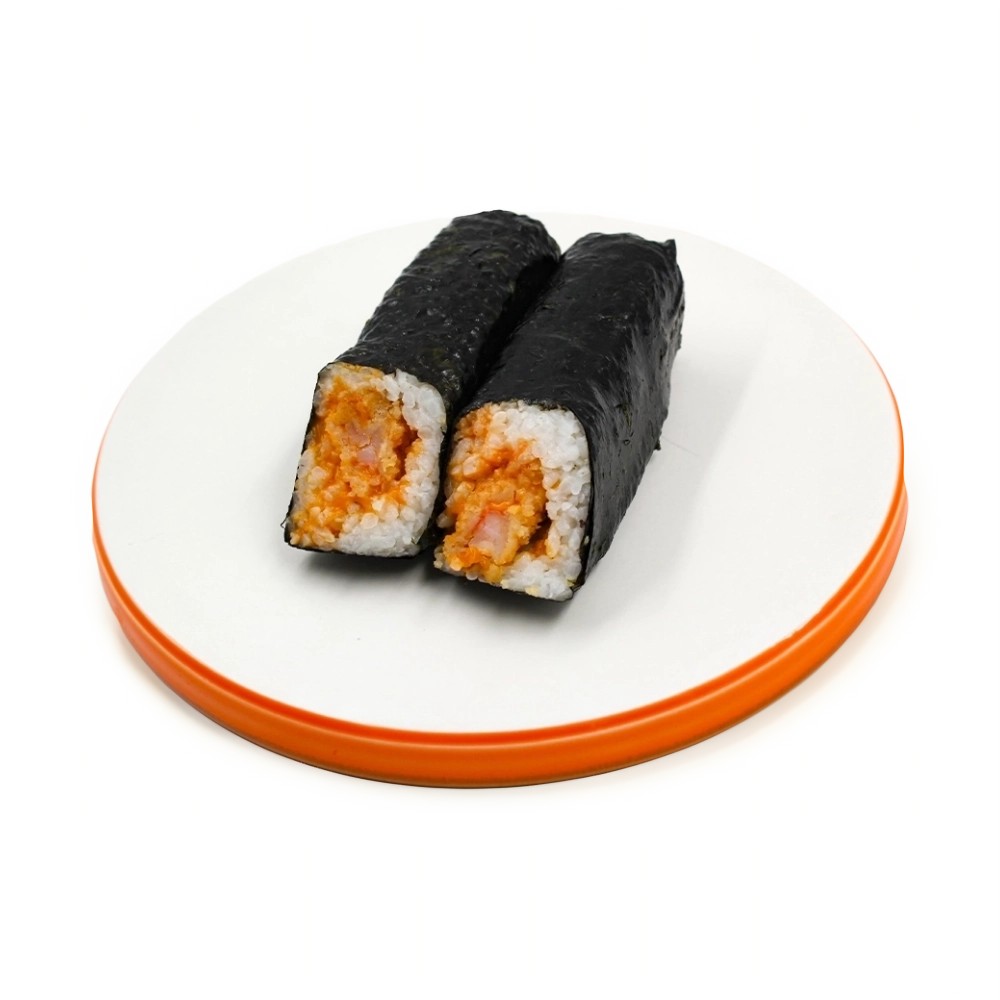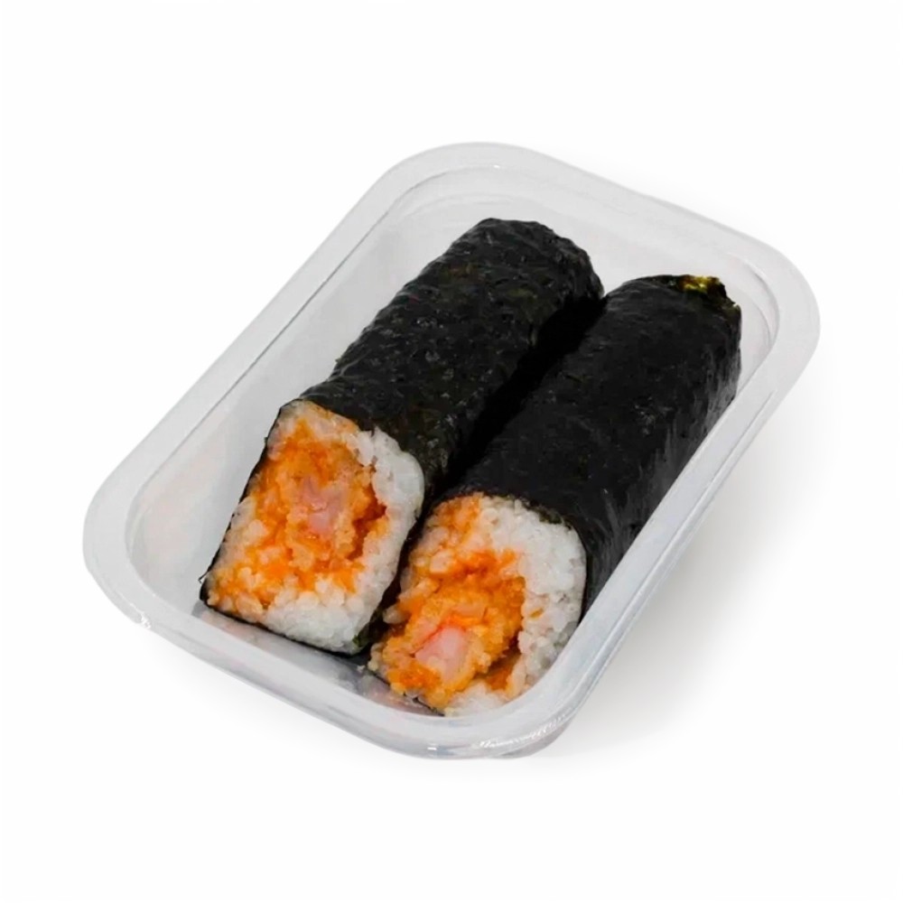ис отварной (вода, крупа рисовая, соус для риса (уксус рисовый, соль, сахар), кпд консервирующая (жидкая смесь (вода, ароматизатор, экстракты специй (можже-вельник, розмарин)), масло рисовое, трегалоза), креветка жареная (креветка бело-ногая, масло фритюрное, сухари панировочные (пшеничная мука, дрожжи, соль, сахар), кляр (вода, мука темпурная (мука пшеничная, мука рисовая, кукурузный крахмал, сода, соль), соль), мука пшеничная), соус «Спайси» (майонез (масло подсолнечное, вода, сахар, соль, яичный желток, регуляторы кислотности: кислота уксусная, молочная кислота, загуститель Е1422, консервант сорбиновая кислота, стабилизаторы: ксантановая камедь, гуаровая камедь, ароматизатор, краситель каротины), масло кунжутное острое (масло кунжутное, перец красный), соевый соус (вода, соевые бобы, пшеница, соль, сахар), перец красный), водоросли сушёные «Нори»