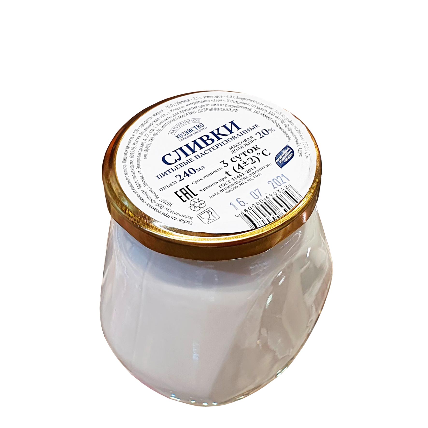 Сливки питьевые 20%