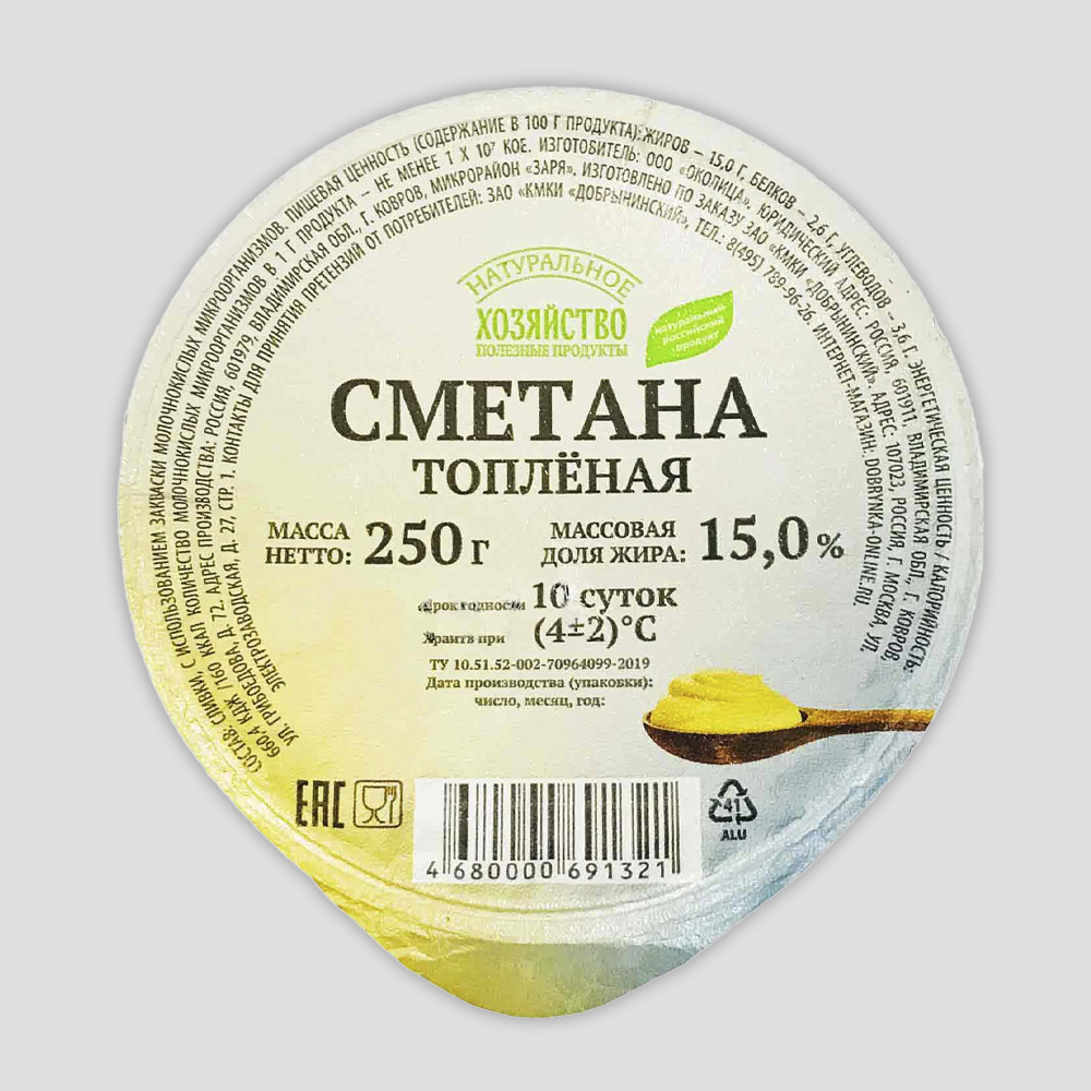 Натуральная сметана 15% доля жирности. Прямо с фермы к Вам на стол!