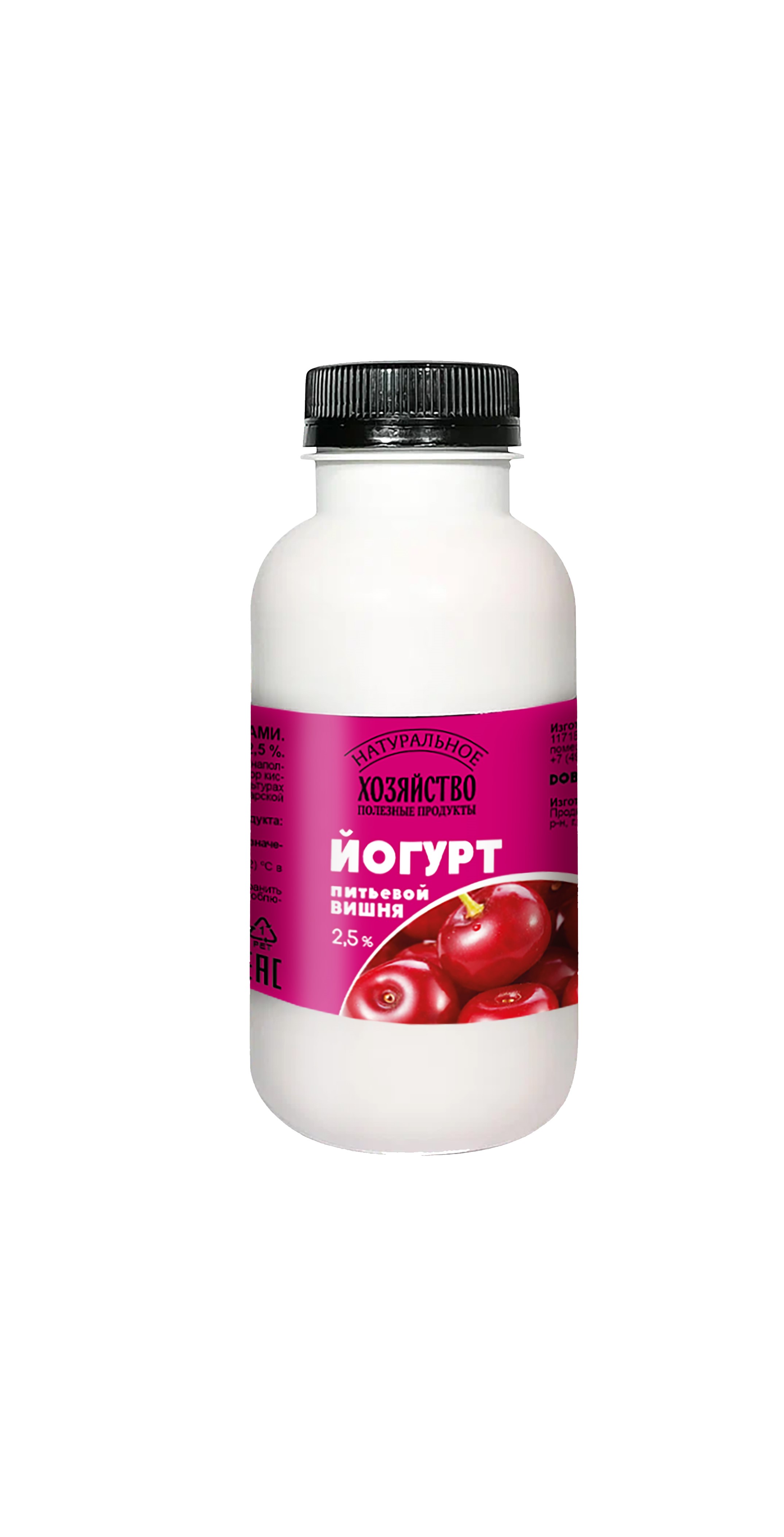 Питьевой легкий йогурт с вишней 2,5% из отборного молока фермерских хозяйств с добавлением закваски. Удобно взять с собой для вкусного и полезного перекуса в течение дня. Содержит бифидобактерии для комфортного пищеварения. Не содержит ароматизаторов, искусственных красителей и ГМО.