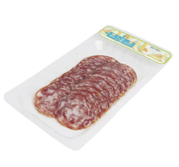 Полусухая сырокопчёная колбаса, приготовленная по традиционному итальянскому рецепту. «Фелино» на 97,6 % состоит из сочной свинины, а оставшиеся 2,4 % приходятся на пряно-пикантные специи. Аппетитная колбаса уже нарезана на аккуратные слайсы — они удачно дополнят мясную тарелку, подойдут для простых бутербродов и эстетичных брускетт.