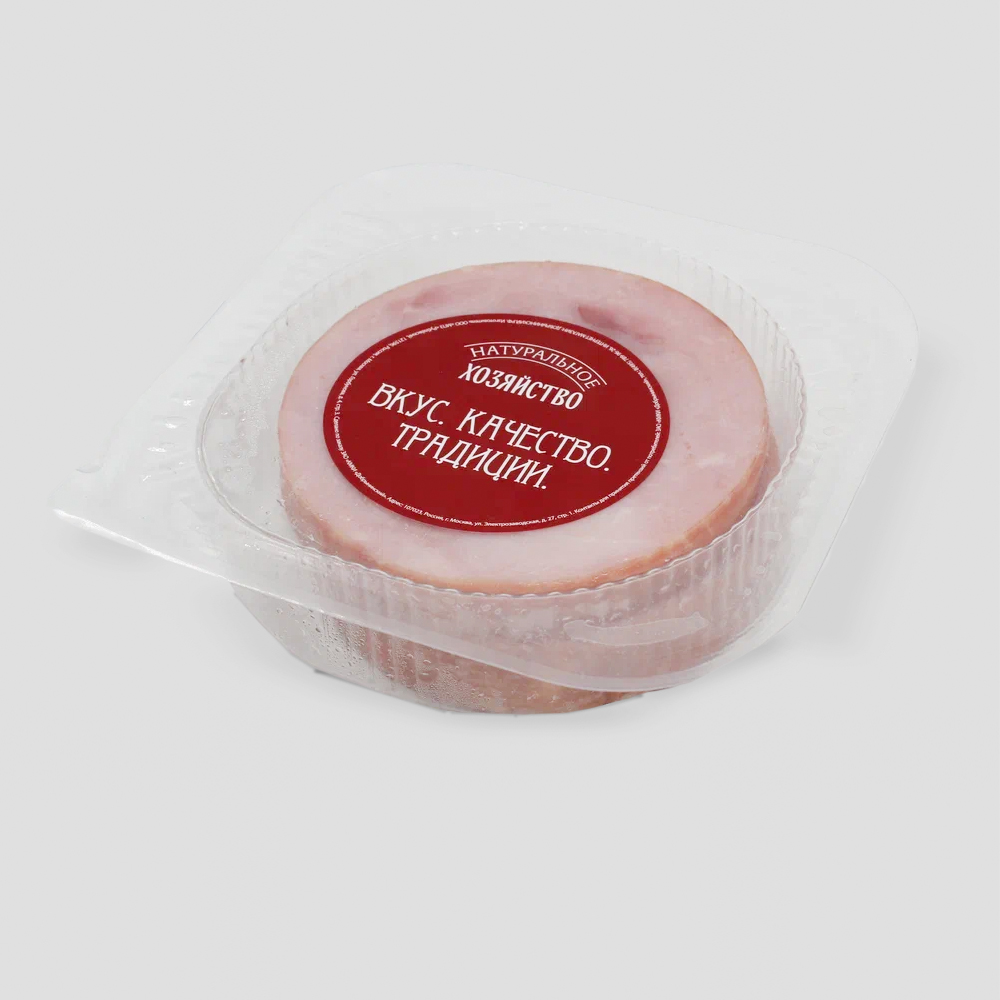 Свинина, вода, посолочно-нитритная смесь (соль поваранная, фиксатор окраски (нитрит натрия)) стабилизатор (поли»осфат натрия), сахар, антиокислитель (аскорбиновая кислота). На прадприятии используются орехи, молоко, яйца, соя сельдерей и продукты их переработки.