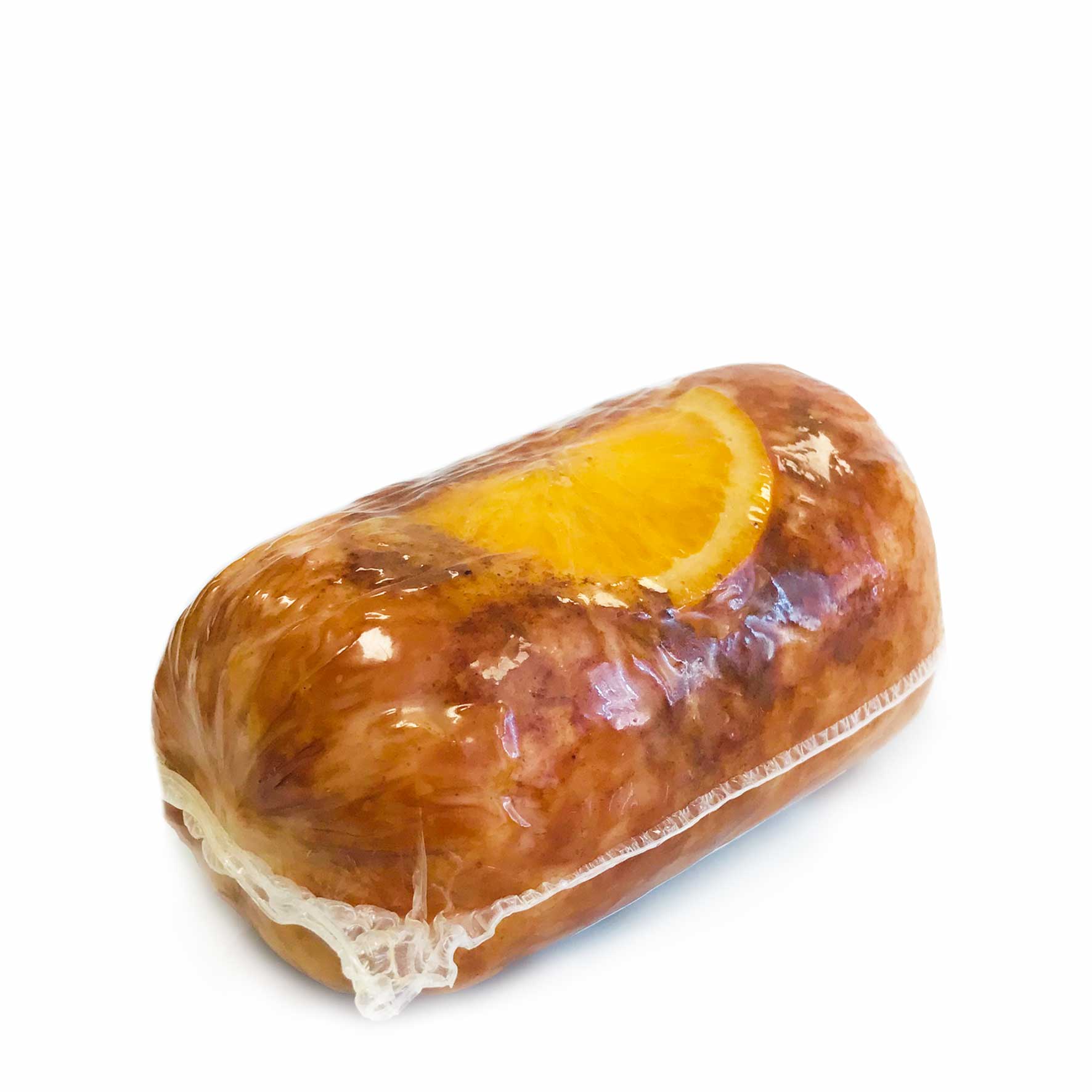 Мясо птицы (цыпленок-бройлер б/к, куропатка б/к), вода питьевая, нитритно-посолочная смесь (соль поваренная пищевая, фиксатор окраски нитрит натрия), апельсины, пирофосфаты (стабилизаторы), трифосфаты (регулятор кислотности), декстроза, аскорбат натрия, изоаскорбиновая кислота, аскорбиновая кислота (антиокислители), паприка молотая, перец красный молотый.