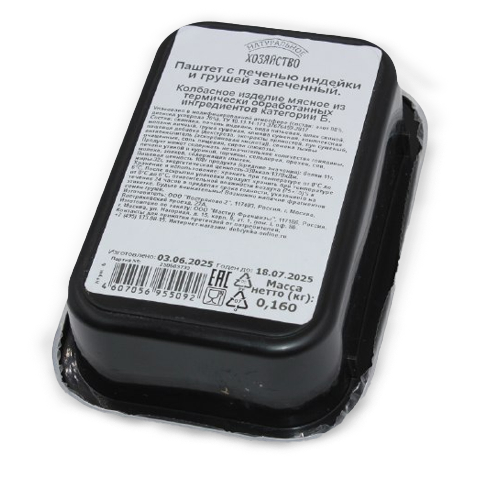 Паштет с печенью индейки и грушей — это изысканное гастрономическое сочетание, где насыщенность нежной печени встречается с лёгкой фруктовой сладостью спелой груши. Бархатная текстура тает на языке, раскрывая тонкие ноты специй и натуральных ингредиентов. Прекрасно подойдёт как для повседневного перекуса, так и для праздничной закуски — с хрустящими тостами или свежим багетом. Удобная упаковка 160 г делает его идеальным вариантом для ужина на двоих или уютного пикника.