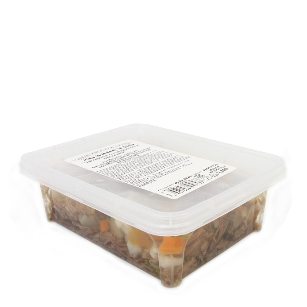 Говядина вареная, капуста брокколи, цветная капуста, морковь столовая вареная, раствор желатина (бульон говяжий, вода питьевая, желатин пищевой говяжий, соль пищевая, пищевая добавка (декстроза, экстракты натуральных пряностей (перец черный, кардамон, перец душистый), лук репчатый сушеный), экстракт чеснока, сок лимонный концентрированный).
