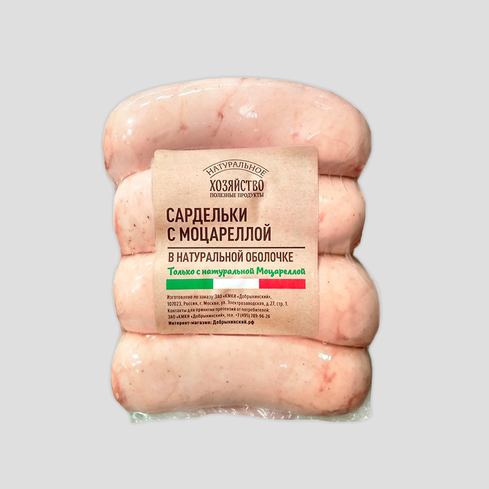 Сардельки в натуральной оболочке из свинины и филе цыплёнка. Уникальный вкус им придаёт добавление молодого сыра Моцарелла произведённого по Итальянской технологии.