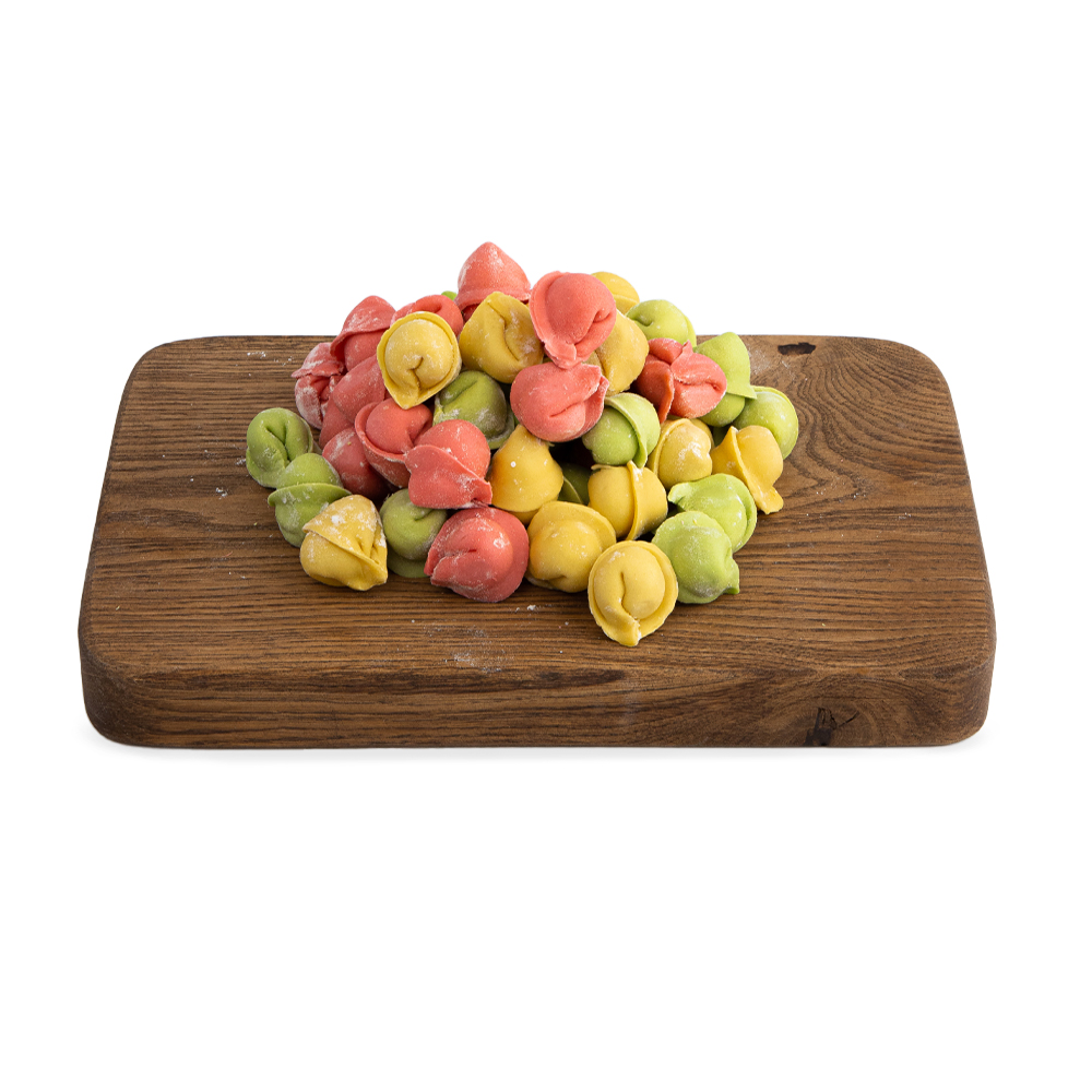 Начинка (мясо кур, свинина, лук репчатый, вода, соль, перец черный молотый), тесто (мука пшеничная в/с, вода питьевая, яйца куриные, соль, пищевой краситель).
