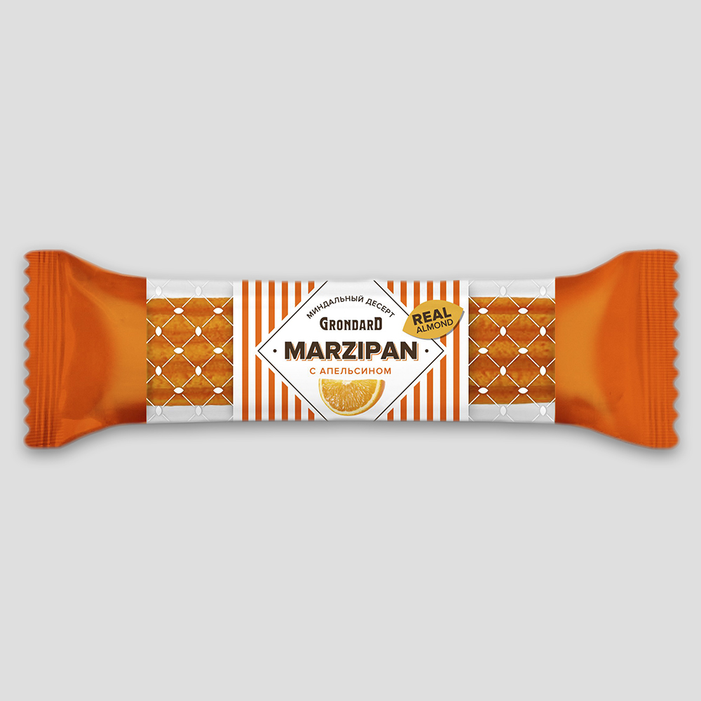 Марципан с натуральными цукатами апельсина подарит яркий насыщенный вкус. Для ценителей и любителей ярких вкусов. Уникальная позиция для рынка, единственный чистый марципан без шоколада.