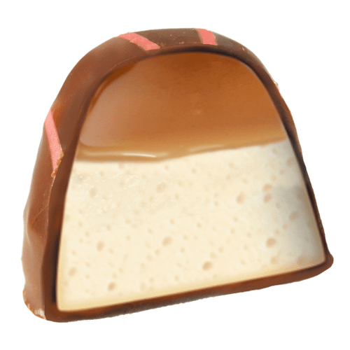 Шоколад молочный (сахар, сухое цельное молоко, масло какао, какао тертое, эмульгаторы: лецитин соевый, эфиры полиглицерина и взаимоэтерифицированных рициноловых кислот; ароматизаторы), сахар, патока, сгущенное с сахаром молоко (цельное молоко, сахар), заменитель молочного жира (рафинированные, дезодорированные растительные масла: пальмовое масло, соевое масло; антиокислители: лимонная кислота, аскорбилпальмитат, токоферолы, концентрат смеси, лецитин подсолнечника), белый шоколад (сахар, масло какао, молоко сухое цельное, эмульгатор лецитин соевый, натуральная ваниль), влагоудерживающий агент сорбит, белок сухой яичный, желирующие агенты агар и пектин, концентрат молочного белка, ароматизаторы, соль, натуральные красители: кармин, экстракт паприки; эмульгаторы: моно- и диглицериды жирных кислот, эфиры полигрицерина и жирных кислот, сорбат калия. Противопоказано при индивидуальной непереносимости яичного белка и/или белка молока.