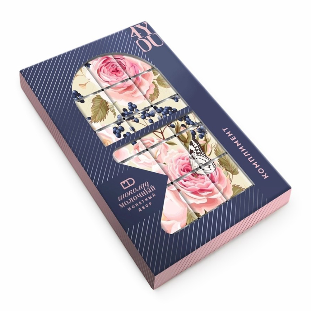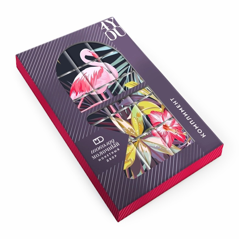Шоколадный набор МОНЕТНЫЙ ДВОР Комплимент – это яркий и вкусный подарок, сувенир, которому понравится и детям и взрослым. В набор входят 15 мини-плиток из молочного шоколада, которые вместе образуют единую картинку.