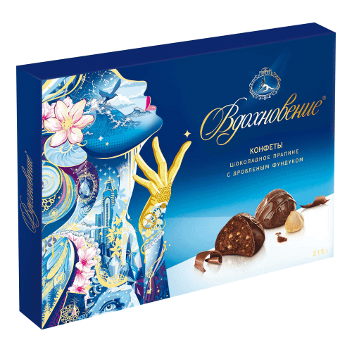 Конфеты в коробке Вдохновение набор куполообразных конфет в шоколадной глазури. Корпус шоколадно-ореховое пралине с дробленым фундуком. Любимый вкус в изысканной упаковке. Плотная, чуть рассыпчатая текстура, узорная темная глазурь. Насыщенный аромат шоколада и богатый вкус какао и орехов замечательный подарок для настоящих ценителей шоколадных конфет.