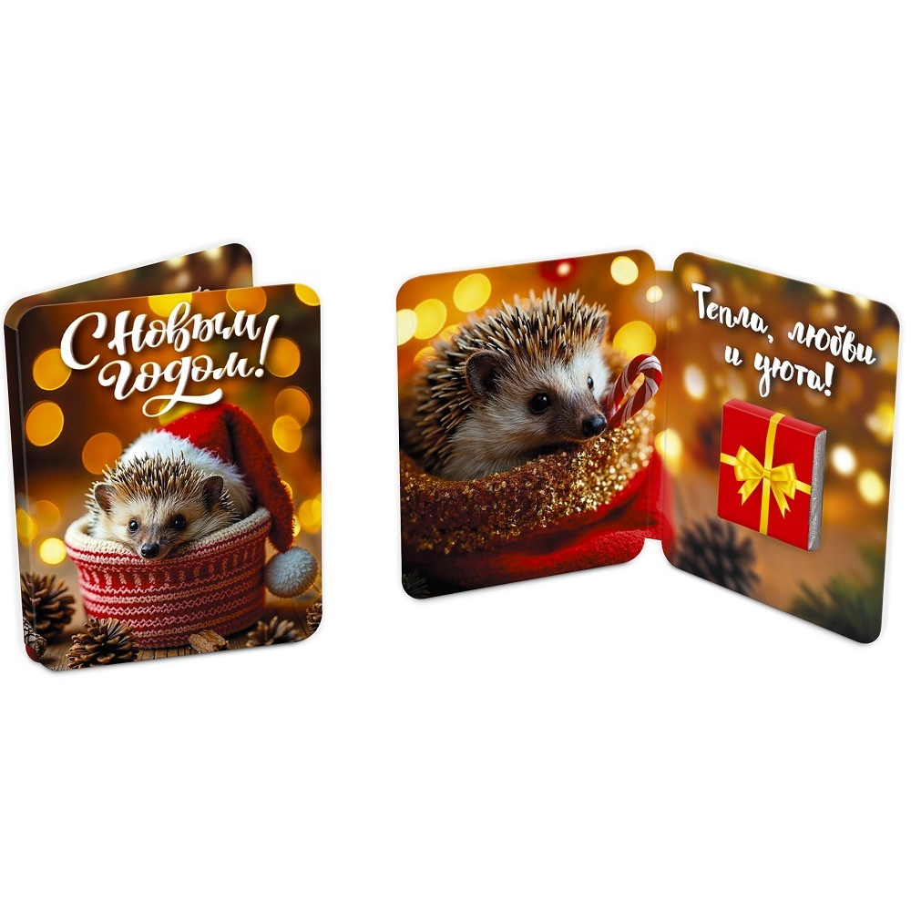 Открытка шоколадная мини Новогодний ёжик 5 г