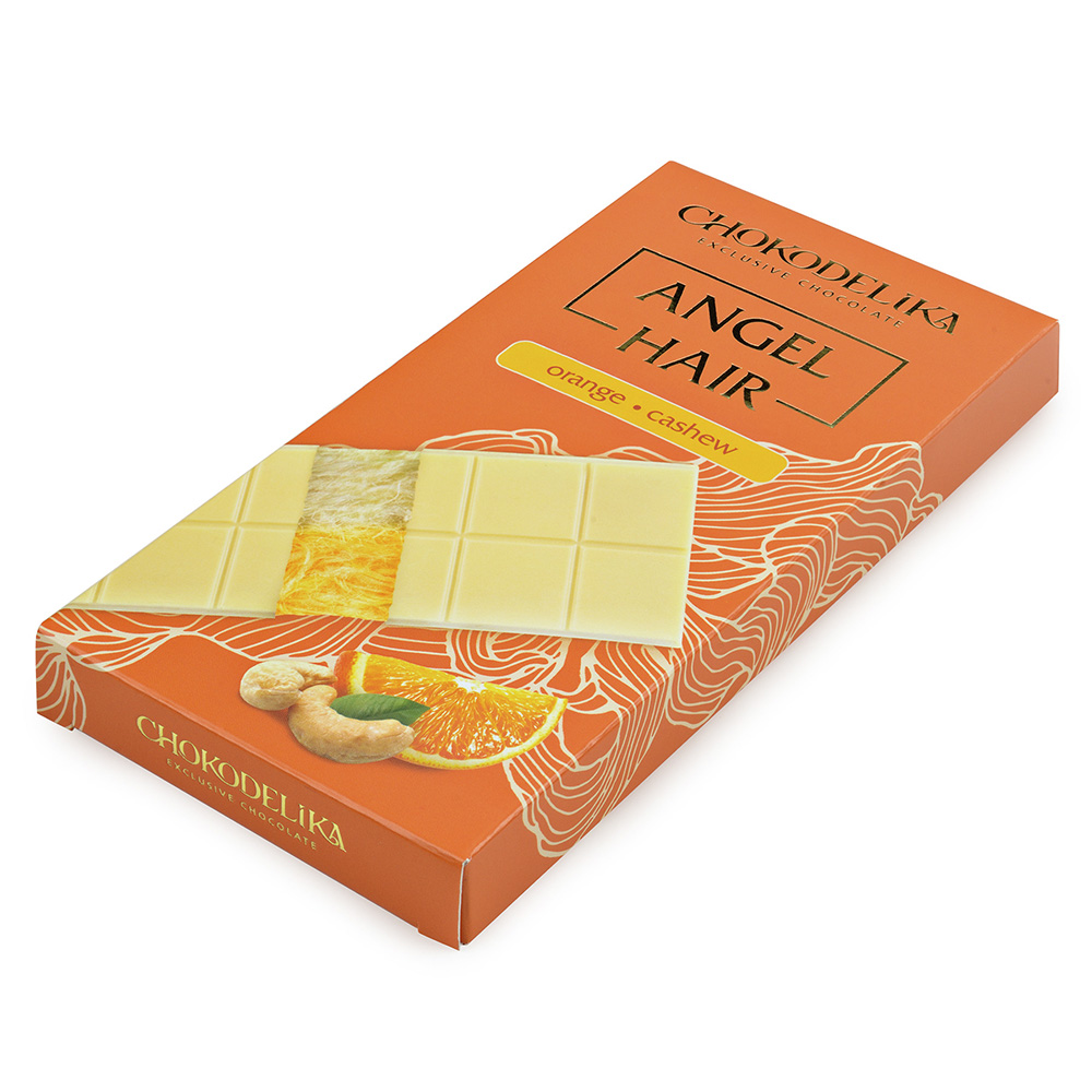 Шоколад белый Аngel Hair с начинкой апельсин-кешью 150 г