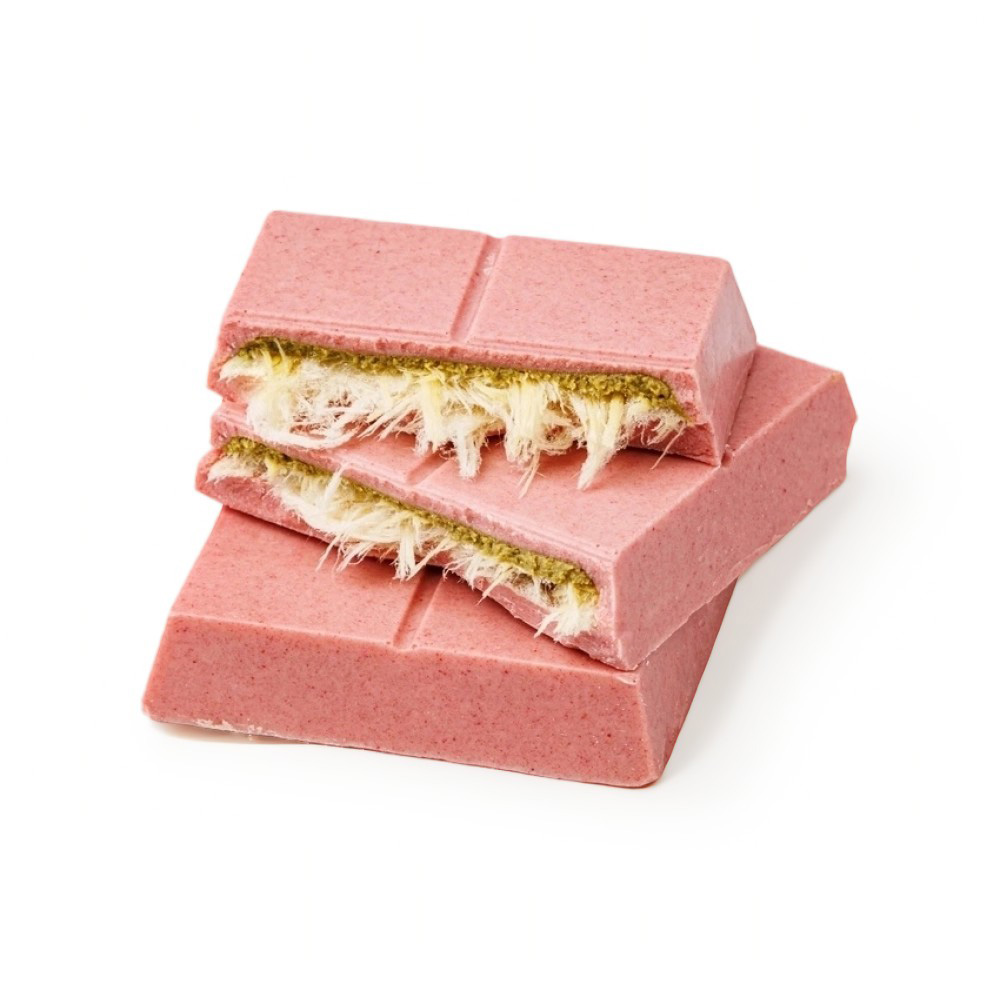 Белый шоколад с начинкой из пишмание — это сладкий комплимент и выражение восхищения. Он выглядит необычно: внутри тонкие нити из обжаренных в масле муки и сахара. Малина добавляет лёгкую кислинку, которая приятно контрастирует с нежной оболочкой. Фисташка и кешью делают вкус более тёплым, ореховым и чуть терпким. В аромате чувствуются ванильные ноты. Десерт оценят любители турецкой кухни и оригинальных восточных лакомств.