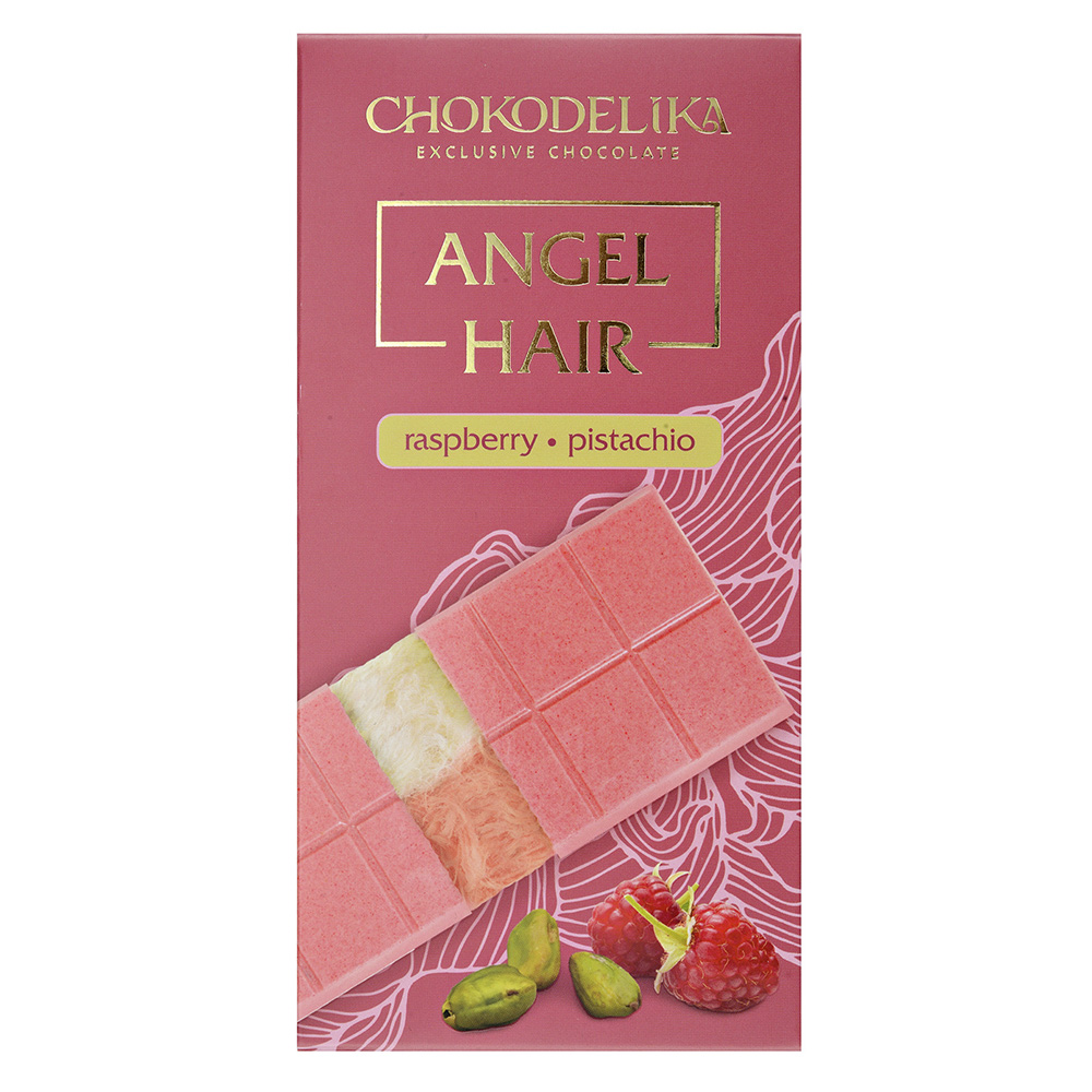 Шоколад белый Аngel Hair с начинкой малина-фисташка 150 г