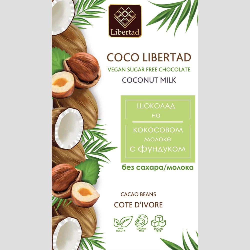Шоколад Coco Libertad без сахара на кокосовом молоке с фундуком 40 г