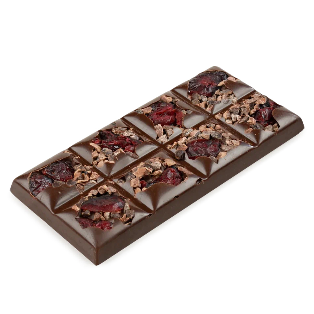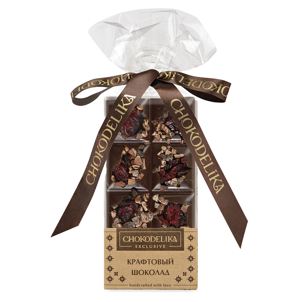 Это настоящий гастрономический шедевр, способный покорить сердца любителей шоколада. Основой изысканного деликатеса является темный шоколад высочайшего качества, созданный с использованием отборных какао-бобов, который сногсшибательно сочетается с горьковатой ноткой ягод. Декор из вяленой клюквы придает шоколаду особую элегантность и привлекательность, а дробленые какао-бобы добавляют текстуру и интригующий хруст. Этот шоколад идеально сочетается с чашкой ароматного кофе или чая, подчеркивая их неповторимый вкус. Он станет прекрасным дополнением к вечернему чаепитию или отличным подарком для тех, кого вы хотите порадовать и удивить.