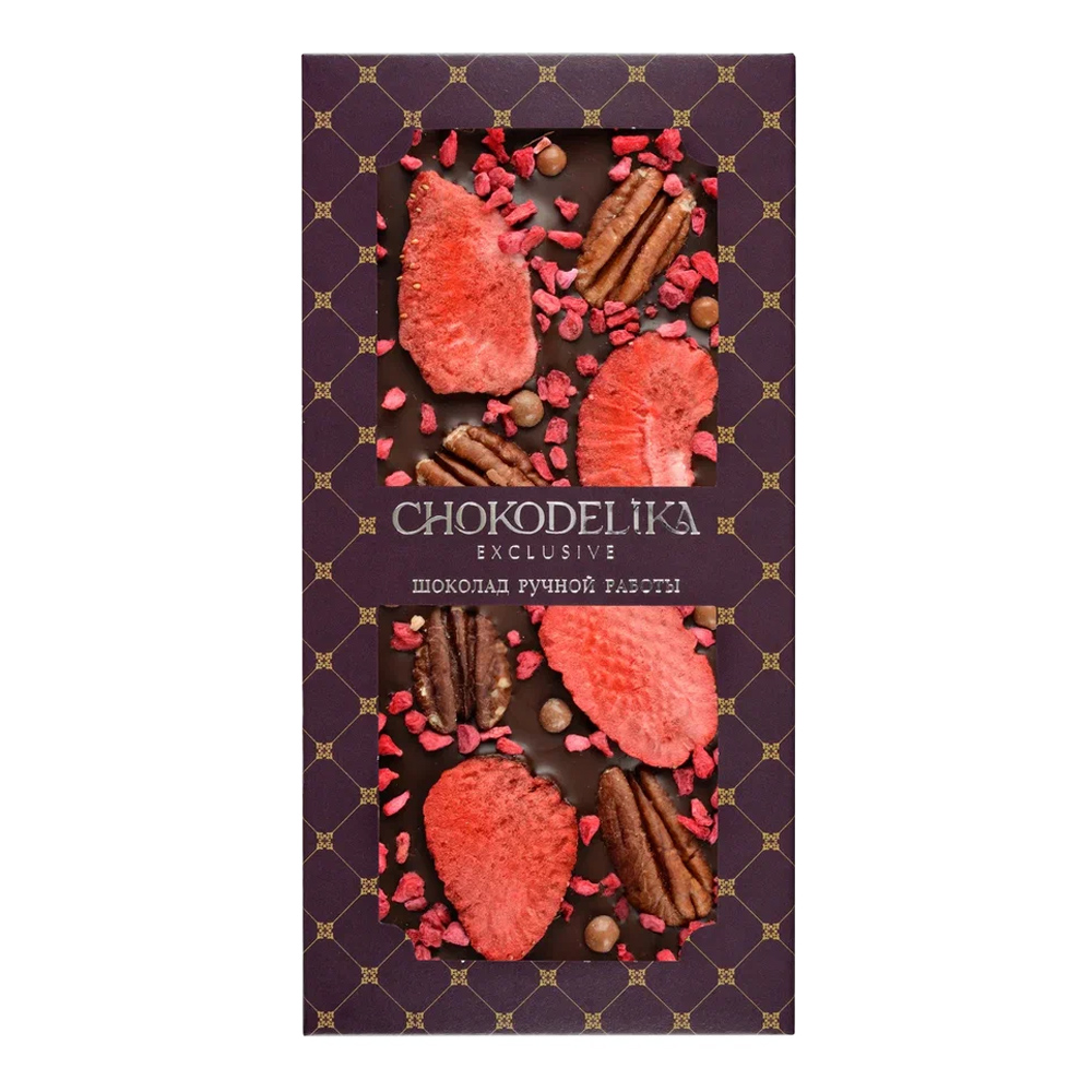 Шоколад темный с украшением клубника, пекан, малина 100 г