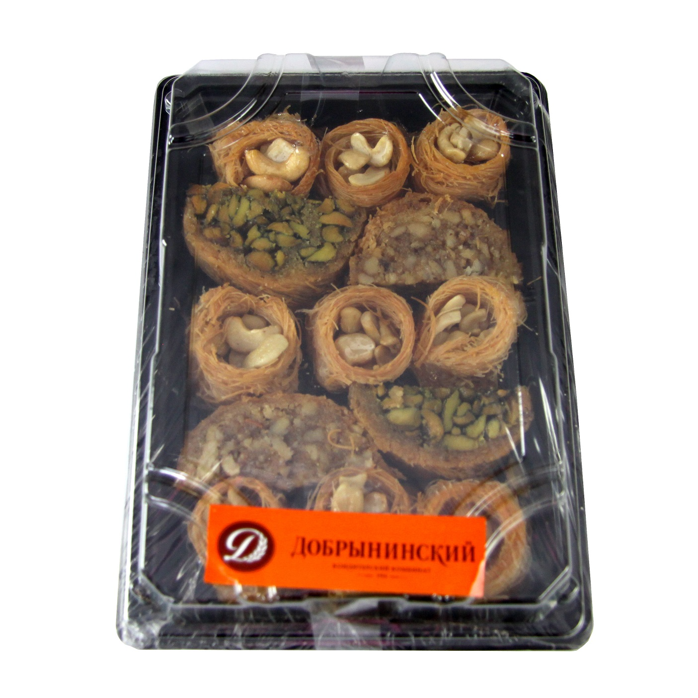 Набор разных видов сладостей из двух видов теста: слоенного и теста катаифи (в виде тонкой лапши) с наполнением из цельного и дробленного арахиса, пропитанных сахарным сиропом. Особенность изделиям придает то, что при употреблении во рту тесто тает слой за слоем, наполняя рецепторы неповторимым вкусом. Восточные сладости, изготовленные с соблюдением всех традиционных технологий востока.