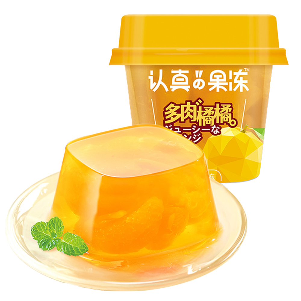 Вода, апельсиновая фруктовая мякоть, фруктозный сироп, съедобная глюкоза, сахар, лактат кальция, лимонная кислота, порошок Конжака, каррагинан, цитрат натрия, триполифосфат натрия, DL-малиновая кислота, хлорид калия, камедь бобов саранчи, геллановая камедь, ацесульфам калия, тартразин, желтый закат, сорбат калия, искусственный ароматизатор