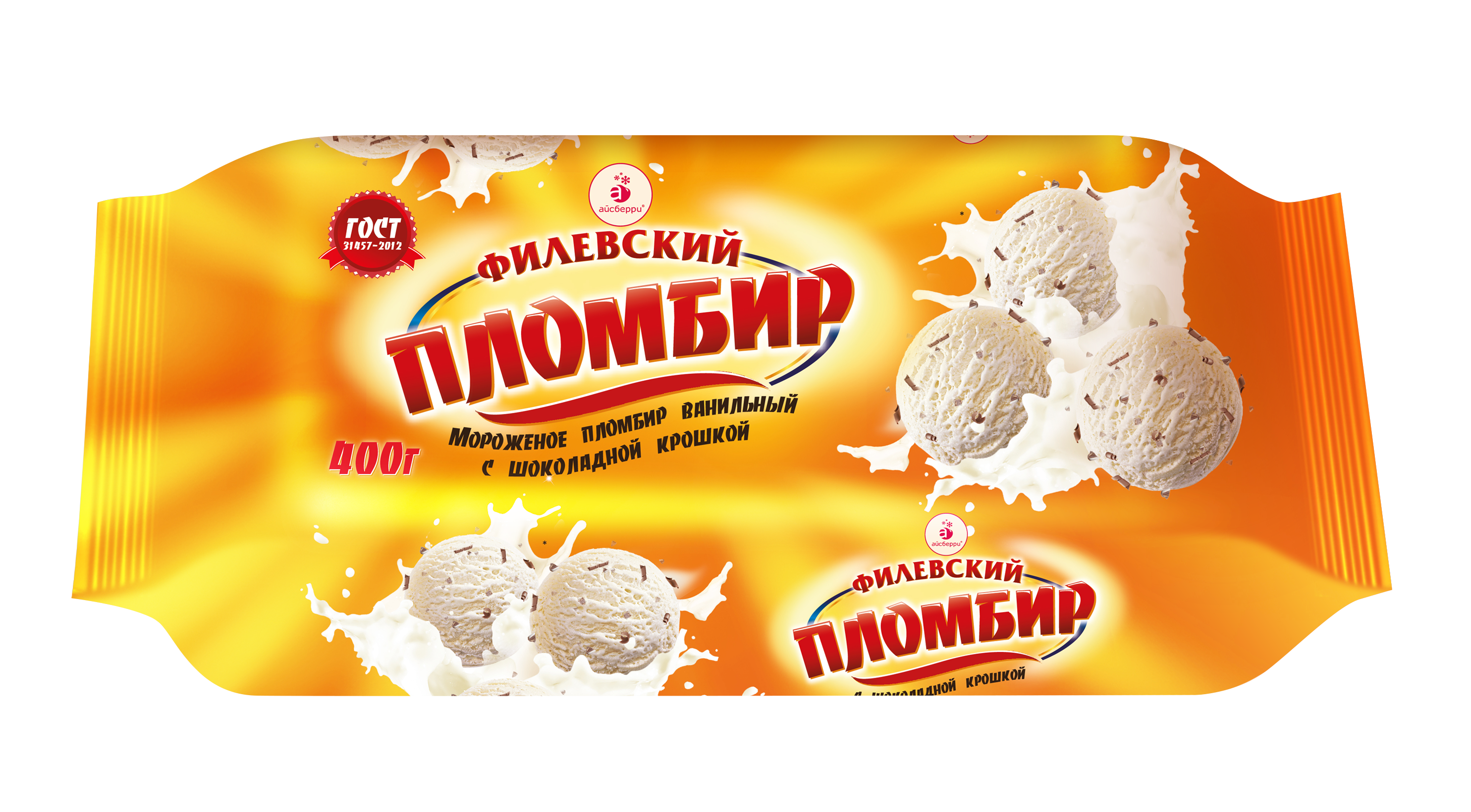 Мороженое Филевский пломбир с шоколадной крошкой брикет 400гр