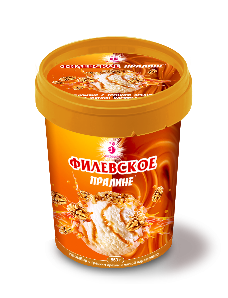 Мороженое Филевское пломбир с грецким орехом и карамелью ведро 550 г