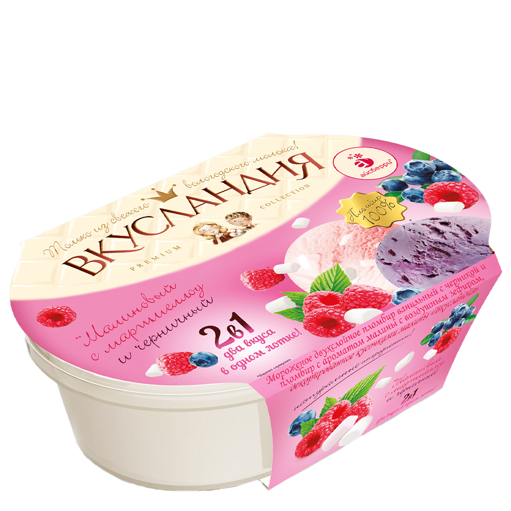 Мороженое Вкусландия пломбир ванильный черника малина зефир 450 гр