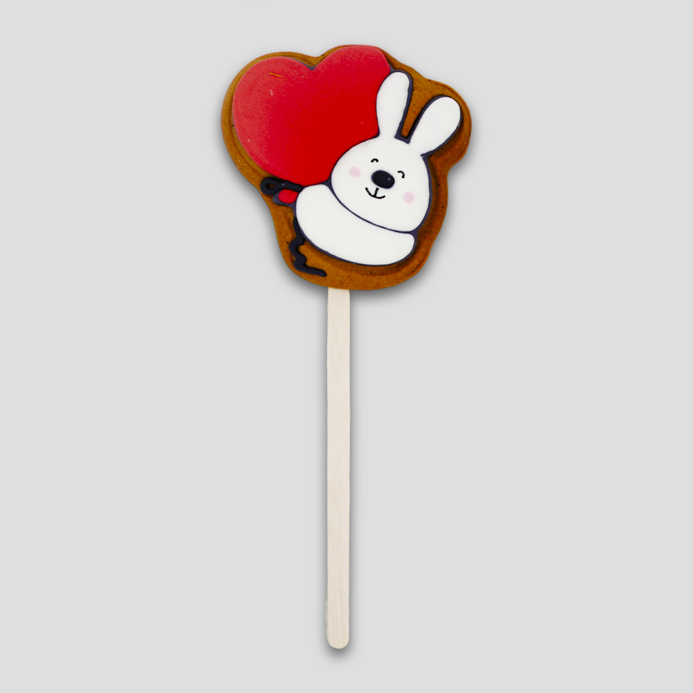 Пряник имбирный с изображением Зайки с шариком, выполненным в технике ручной росписи. Без добавления растительных жиров и искусственных консервантов.