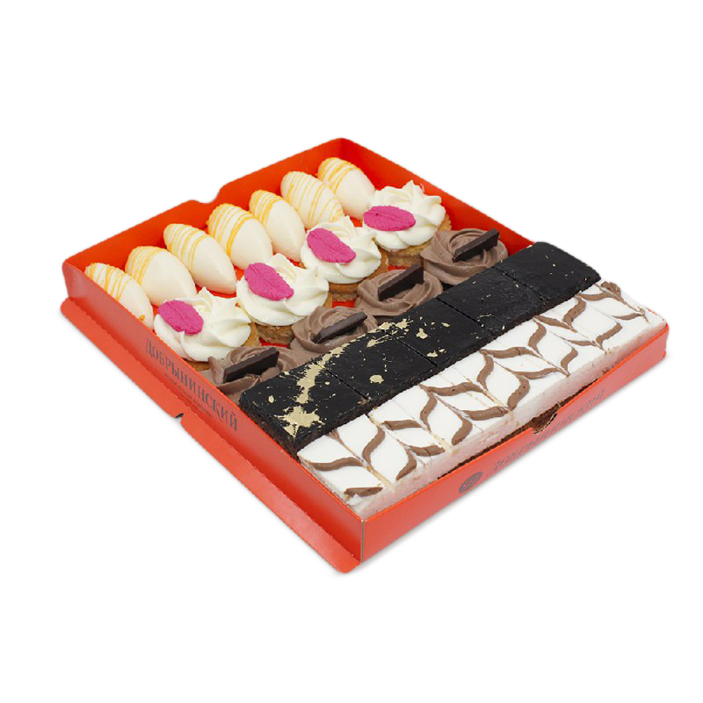 Меланж яичный пастеризованный, вода, сахар песок, мука пшеничная в/с, маргарин столовый (масло растительное рафинированное дезодорированное, вода, эмульгатор (Е171), сорбат калия), соль поваренная пищевая, ароматизатор «Ваниль»), масло подсолнечное рафинированное, кофе растворимый, какао-порошок, молоко 3,2% б.з.м.ж. (молоко питьевое пастеризованное), сыр творожный (сливки, молоко цельное, соль пищевая, стабилизаторы (камедь рожкового дерева, гуаровая камедь), мезофильные заквасочные микроорганизмы, молокосвертывающий фермент микробного происхождения), сливки растительные 27% (вода, заменитель масла какао нетемперируемый лауринового типа, рафинированное дезодорированное растительное масло, эмульгатор соевый лецитин, сахар, молочный белок, стабилизатор Е466, эмульгатор (Е460(i), Е472b, Е472е), влагоудерживающий агент Е420(ii) регулятор кислотности E339(ii), соль поваренная пищевая, ароматизатор «Ваниль»), сахарная пудра, молоко сгущённое с сахаром варёное м.д.ж. 8,5% (нормализованное молоко, сахар (сахароза)), желатин пищевой говяжий, глазурь кондитерская со вкусом малины и со скусом манго (сахар белый кристаллический свекловичный, заменитель масла какао нетемперируемый лауринового типа (гидрогенизированная фракция пальмоядрового масла, эмульгаторы сорбитан тристеарат(Е492), соевый лецитин(Е322)), сыворотка молочная сухая, эмульгатор (соевый лейцетин (Е322), ароматизатор пищевой), глазурь тёмная кондитерская (сахар белый кристаллический свекловичный, заменитель масла какао не темперируемый лауринового типа,гидрогенизированная фракция пальмоядрового масла, эмульгаторы (Е492,Е322), какао-порошок, сыворотка молочная сухая,(Е322)), арахис бланшированный, разрыхлитель теста, соль пищевая, кандурин золотой. Возможно наличие следов: орехов