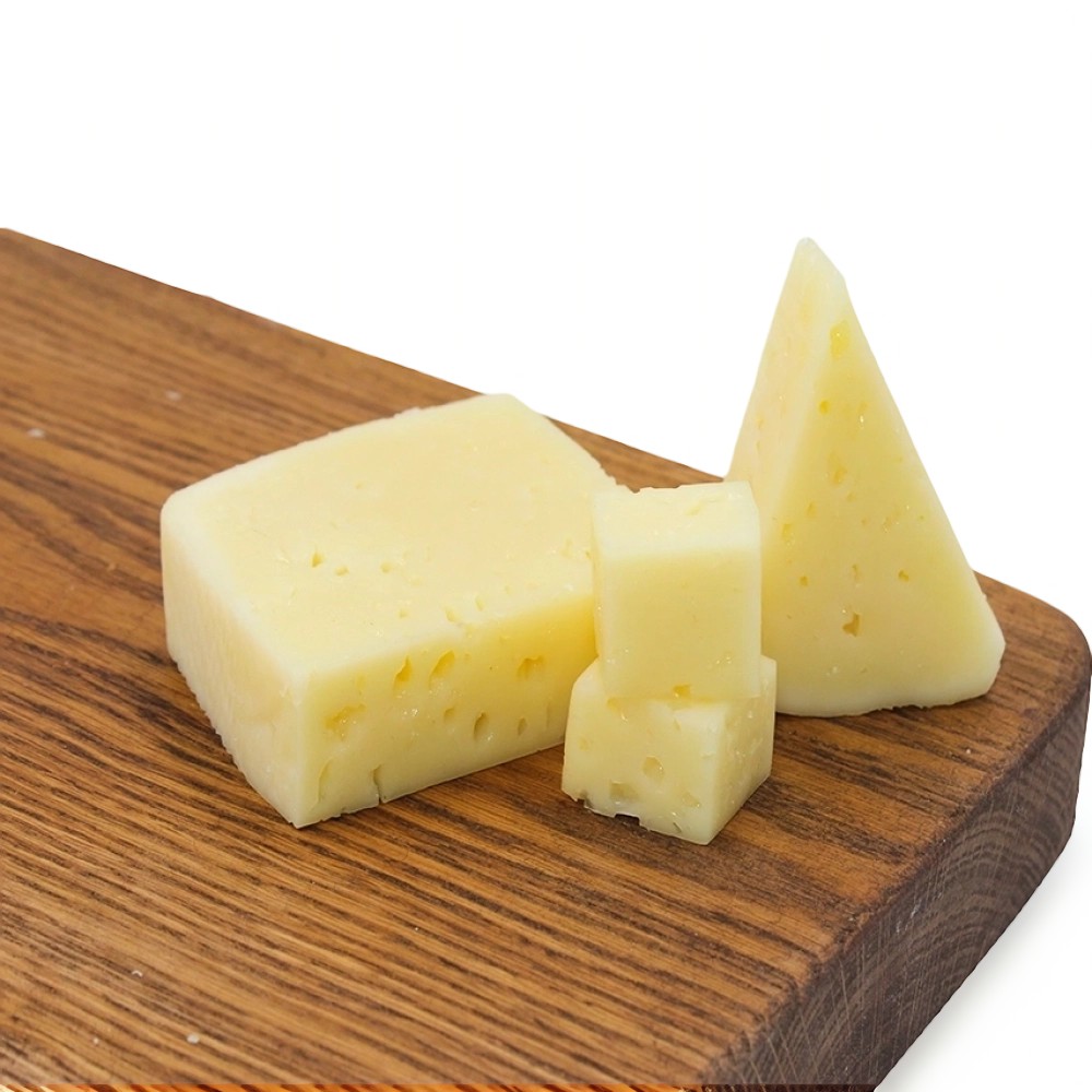 Изготовлен из пастеризованного и топленого молока с использованием концентратов мезофильных молочнокислых микроорганизмов, поваренной пищевой соли, сычужно - говяжьего молокосвертывающего ферментного препарата животного происхождения СГ-50, уплотнителя - хлористого кальция, консерванта - калия азотнокислого, натурального пищевого красителя "Аннато".