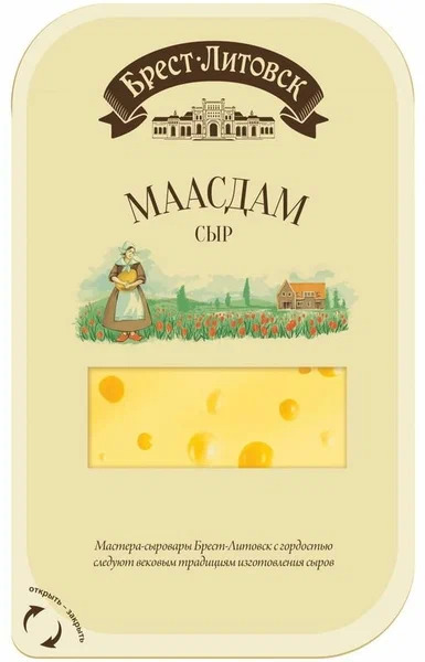 Сыр Маасдам полутв.Брест-Литовск нарезка 45% 130г БЗМЖ